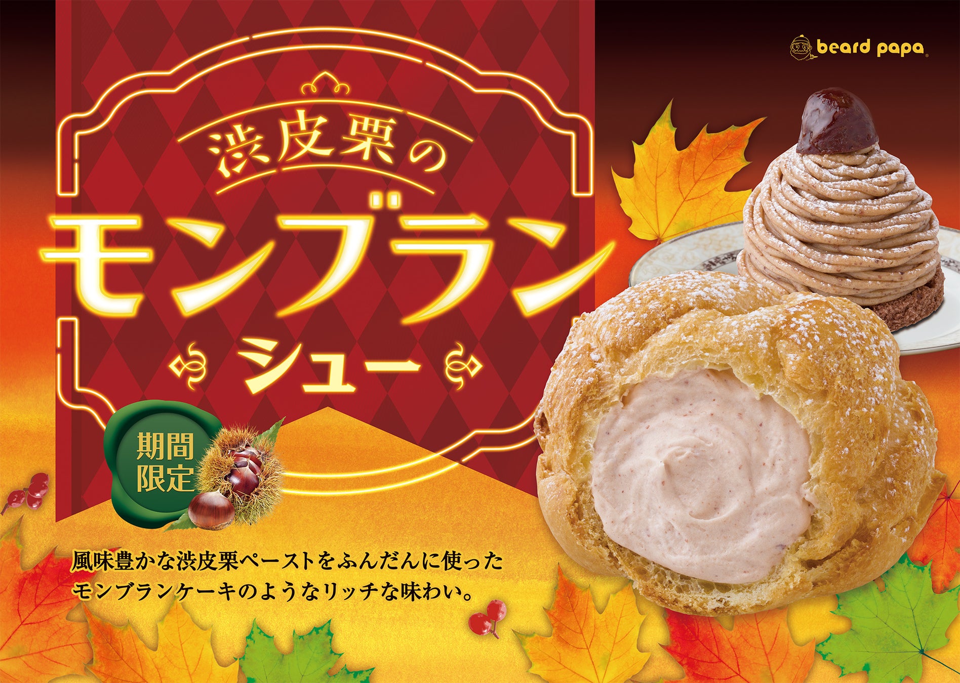 秋本番!ビアードパパから “渋皮栗のモンブランシュー” が登場!!まるでケーキのようなリッチなシュークリーム