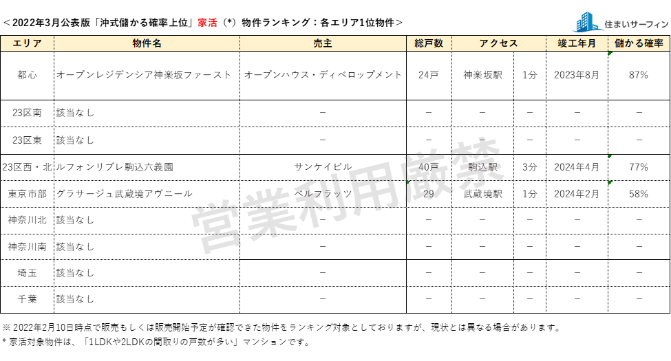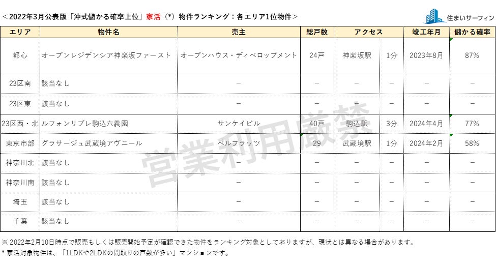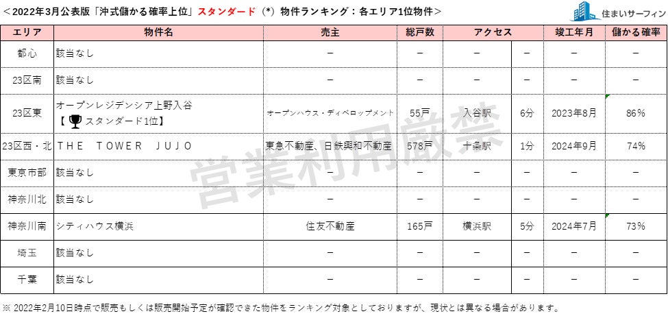 3月公表分は、2022年2月10日時点で販売もしくは販売予定が確認できた物件を対象としています。