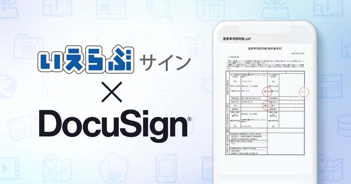 株式会社いえらぶGROUP(以下、いえらぶGROUP)が提供する不動産業務支援に特化したバーティカルSaaSである「いえらぶCLOUD」は、本日2022年5月19日より、世界180カ国100万社以上で利用されているドキュサインの電子署名サービス「DocuSign eSignature」とのシステム連携開発を開始します。これにより、改正宅地建物取引業法によって全面解禁となった不動産契約における電子契約の普及を推進します。