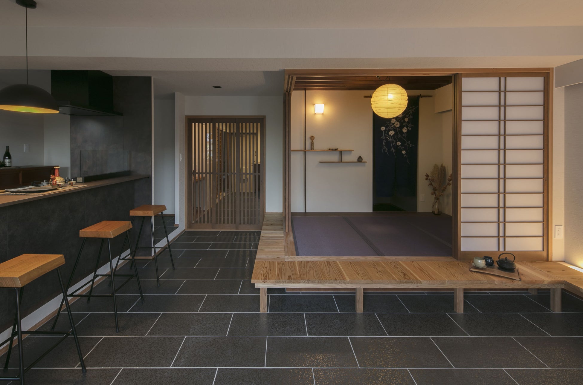 同事例の参考に数寄屋造りの記念館に足繁く通い、自ら一枚板を買い付けにいくお客さんのこだわり、部屋の中に東屋を建てようとする設計のこだわり、長年眠っていた本物の素材を活用、縁側のつくりかたにも感じる職人のこだわりなど、お客様、設計、大工、スタッフ、みんなのワクワクが詰まった、和のリノベーションです。