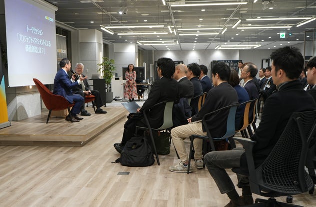 2名の講演の後、「PMによる価値創造とは?」をテーマに加藤氏と川崎によるトークセッションを展開しました。