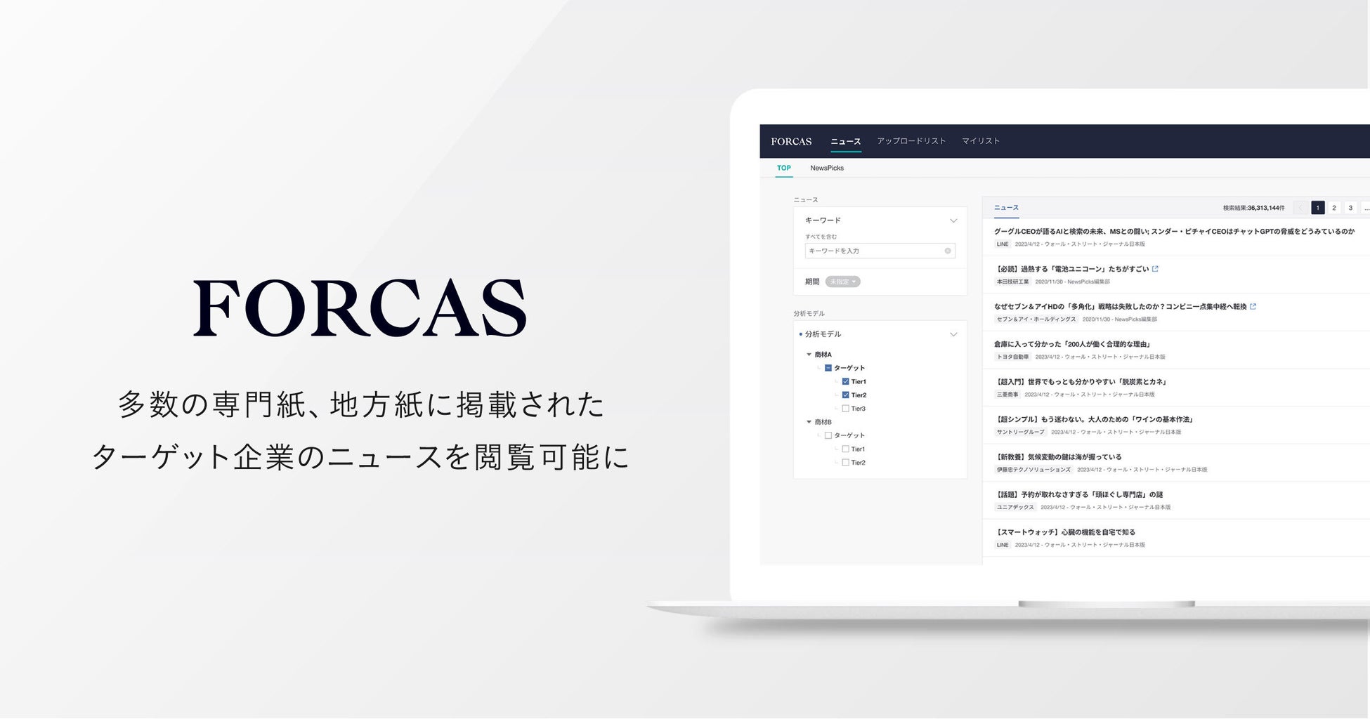 FORCAS、1日約2,000件のニュースが閲覧可能に