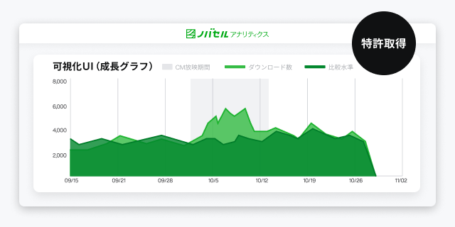 テレビCM効果分析ツール「ノバセルアナリティクス」、「可視化UI(成長グラフ)」における特許取得