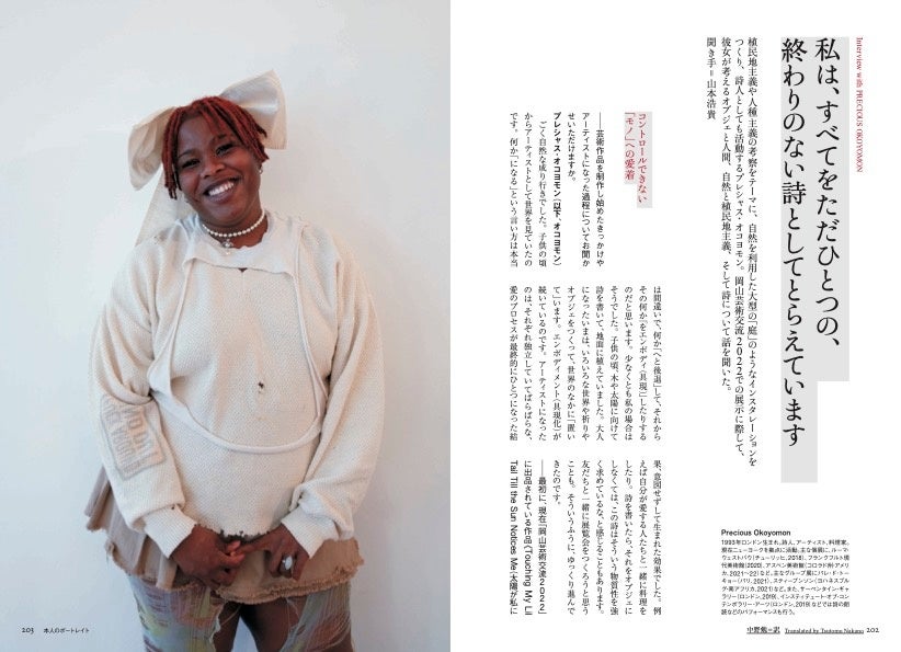 また、「岡山芸術交流2022」で巨大なクマのぬいぐるみを水の抜かれた小学校のプールに設置したプレシャス・オコヨモンのロングインタビューや、日系移民二世でカリフォルニアに生まれ、強制抑留キャンプに収容されたアーティスト、ルース・アサワについての沢山遼による論考を掲載。