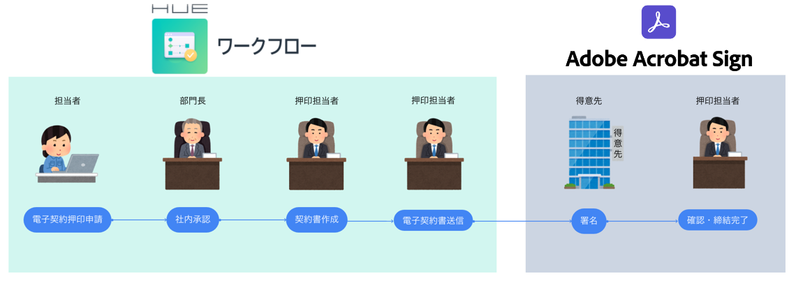 「HUE ワークフロー」が電子サインサービス「Adobe Acrobat Sign」とAPI連携開始 ー契約書の社内承認から契約締結まで、完全ペーパーレス・脱ハンコ化ー