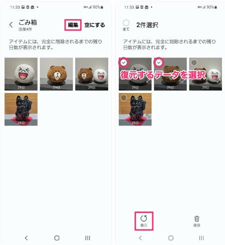 - 方法1:ギャラリーアプリのゴミ箱を確認する