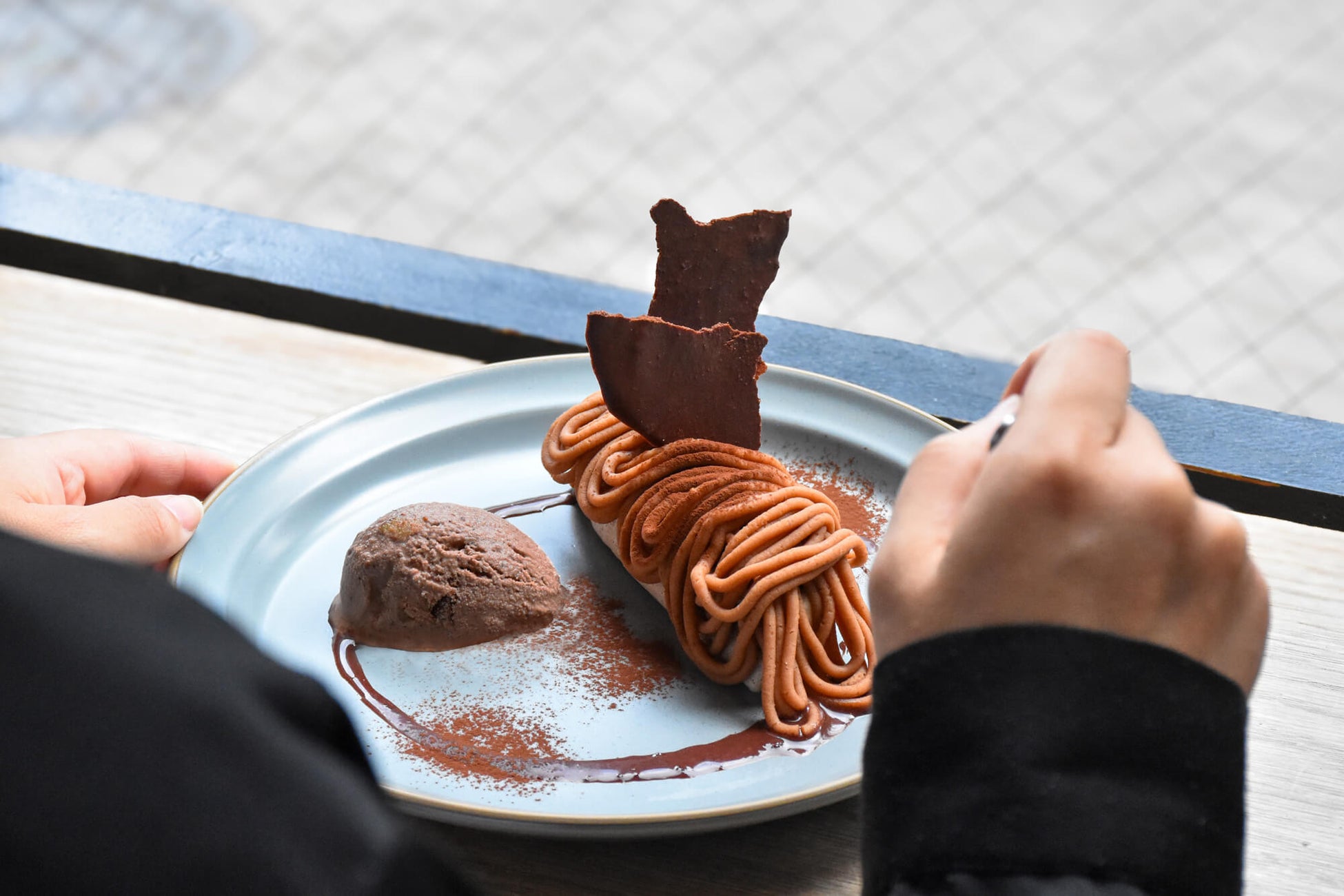 チョコレートによって変化する栗の味わいを楽しむ、チョコレート専門店ならではのモンブラン