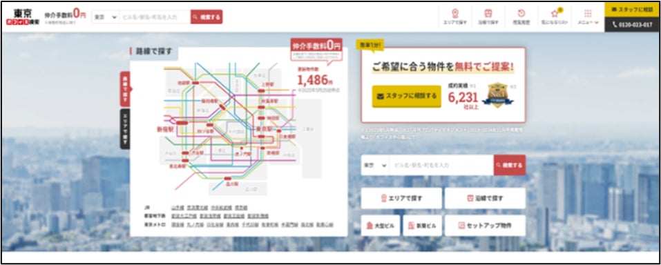 当社が運営する「東京オフィス検索®」は2005年にサービス提供を開始いたしました。仲介手数料無料で、オフィスの移転計画から、内見、契約手続きはもちろん、内装造作や移転後の行政手続きのフォローまで、オフィス移転に関するさまざまなお悩みをサポートしてまいりました。その実績から、これまでは検索・ご対応可能な地域が限られており、ご支援できなかったエリアのお客様からも対応エリア拡大希望のお声をいただくようになりました。