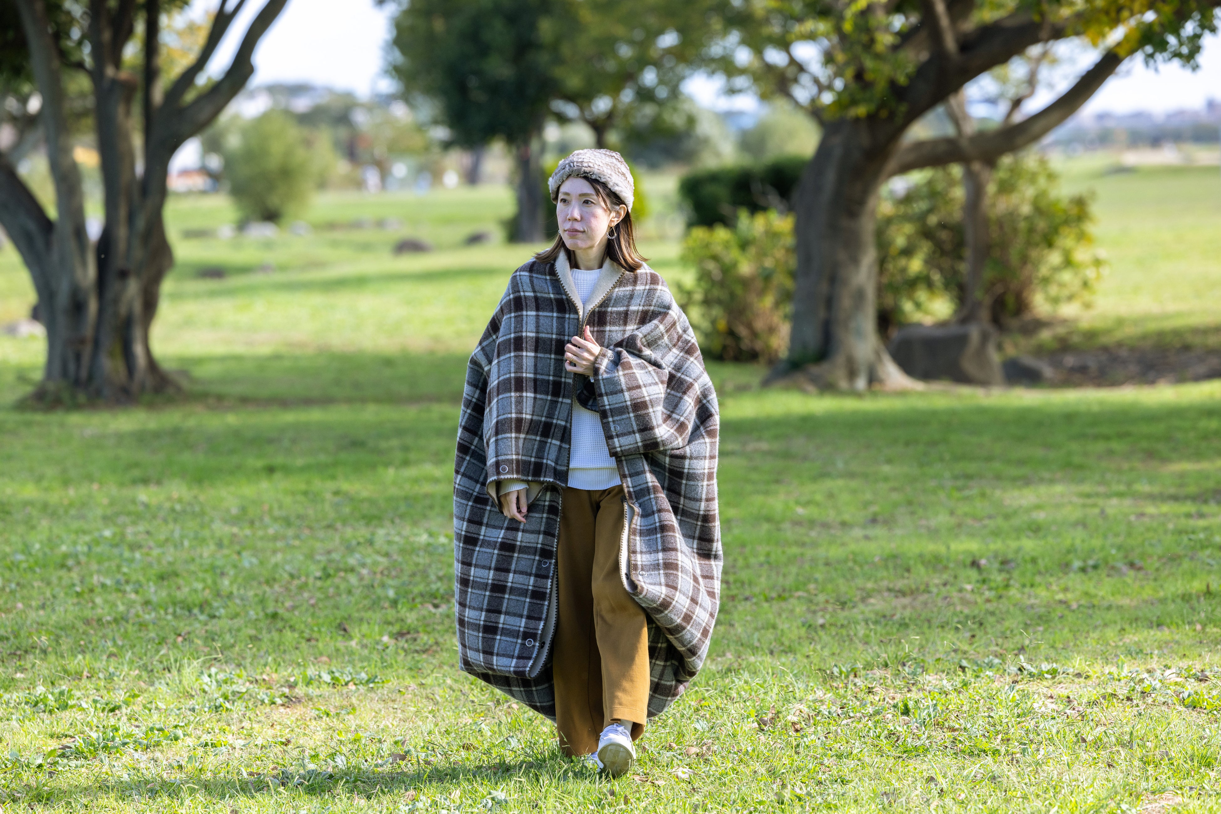 ・燃え広がりにくいウールの特性から、焚き火の際の膝掛けに。