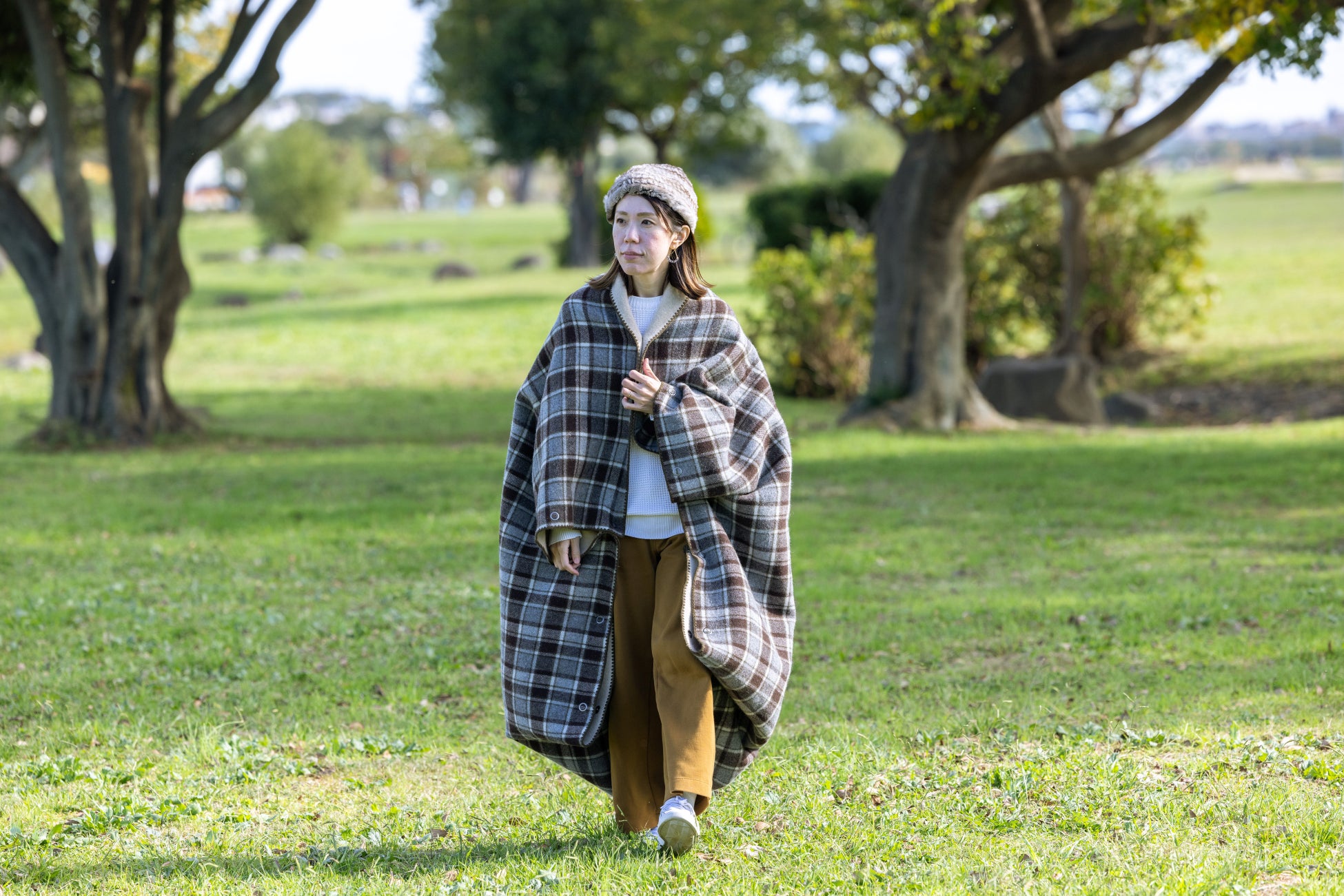 ブランドお披露目の第一弾は、日本最大の繊維産地“尾州”の叡智を結集させた再生ウール「毛七(けしち)」とコラボレーション。寝袋スタイルやショールスタイルにも自由にスタイルチェンジできるマルチな大型ウールブランケットを、2023年11月30日より販売開始いたします。