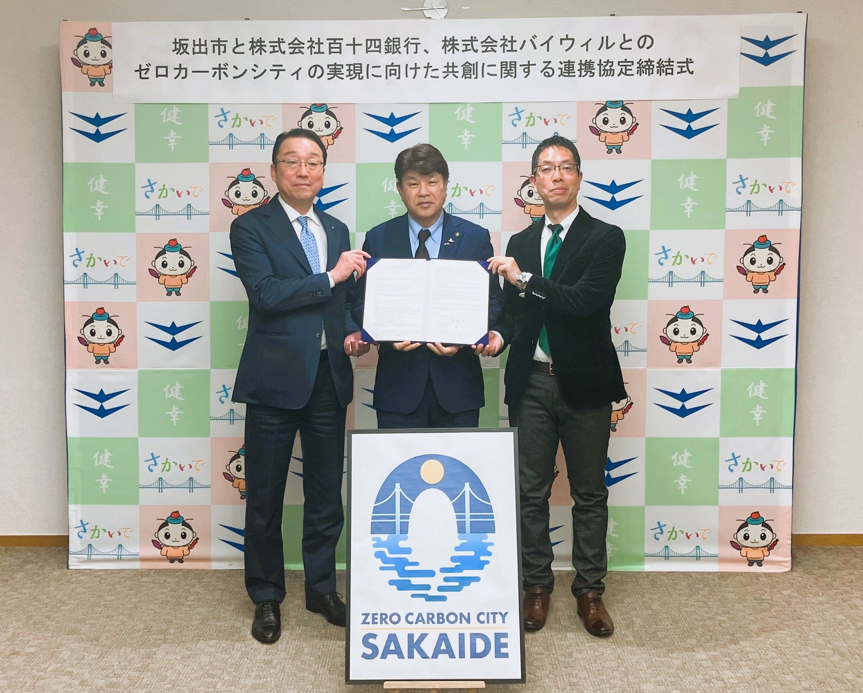 香川県坂出市、百十四銀行、バイウィルがゼロカーボンシティの実現に向けた共創を目指し、包括連携協定を締結