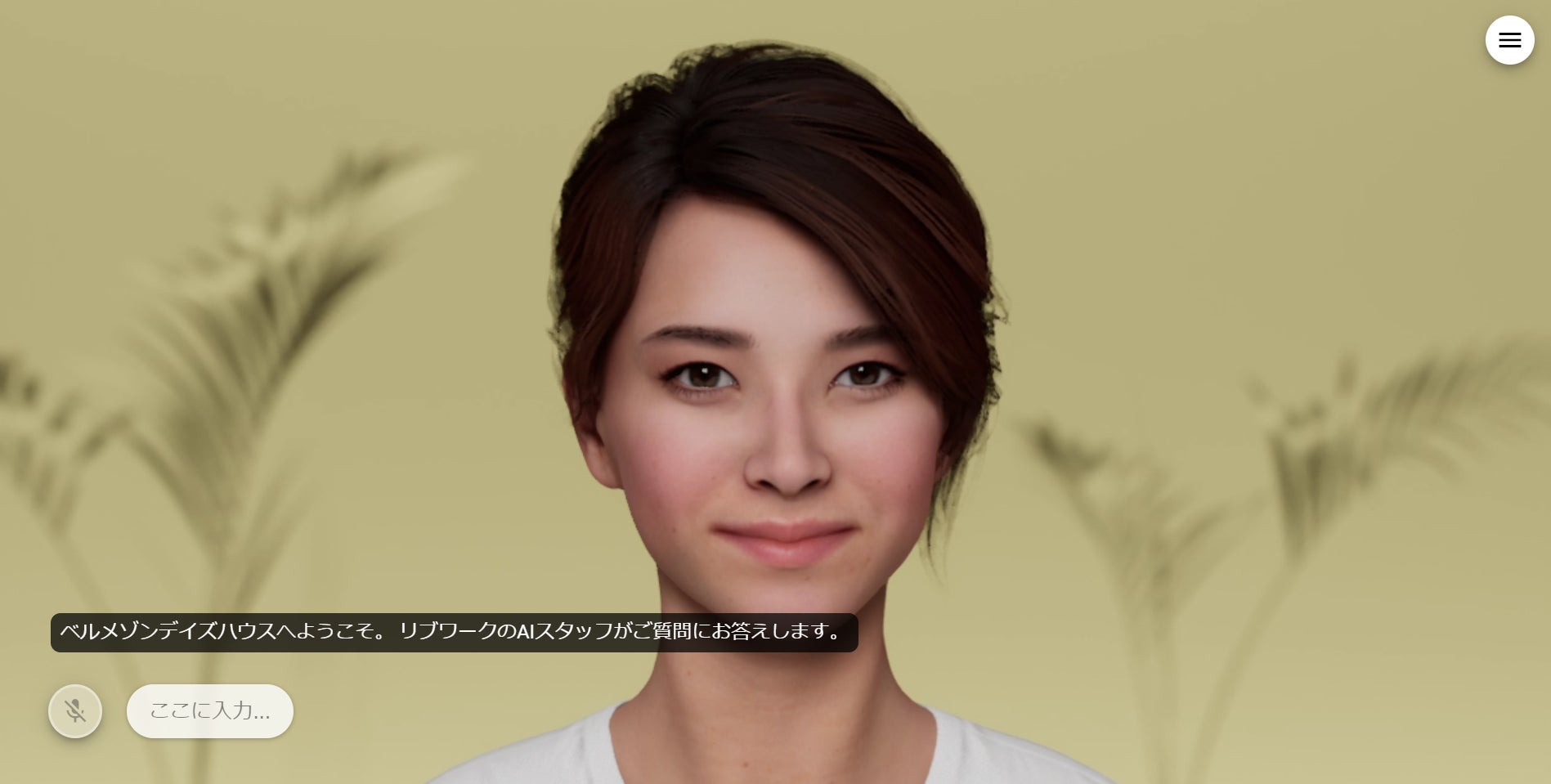 コラボレーション先であるLib Workは、住宅業界では初めて生成AIを使用したデジタルヒューマンによる接客システムの導入を計画しています。住宅商品の説明を人間に代わって、購入検討者がPCやスマホからアクセスして住宅に関するコンサルティングを24時間いつでも得られる仕組みです。デジタルヒューマンは、人間のような動きや表情を生成できる3DCGキャラクターで、音声やキーボードで質問などを入力すると自動で回答し、また必要に応じて画像を画面上に映し出すなど、様々な情報をお伝えし、提案をすることが可能です。 (2024年7月30日時点)