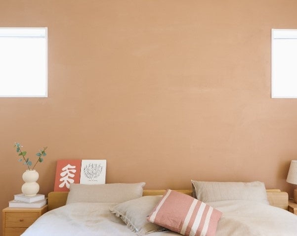 無垢材など自然の温もりが感じられる自然素材を採用し、生活しながら木のぬくもりを感じられる空間です。寝室の壁紙には調湿性能の高い漆喰「糸島漆喰ナチュオル」を使用し、快適な室内環境を実現します。