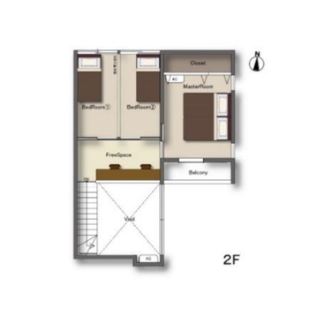 階段を上がるとすぐに家族みんなで使えるフリースペースがあり、吹抜けを通じて1階の家族の気配を感じながら過ごせます。そして主寝室、子ども部屋を配置。子ども部屋は将来的に仕切ることができる可変性を持たせたつくりです。