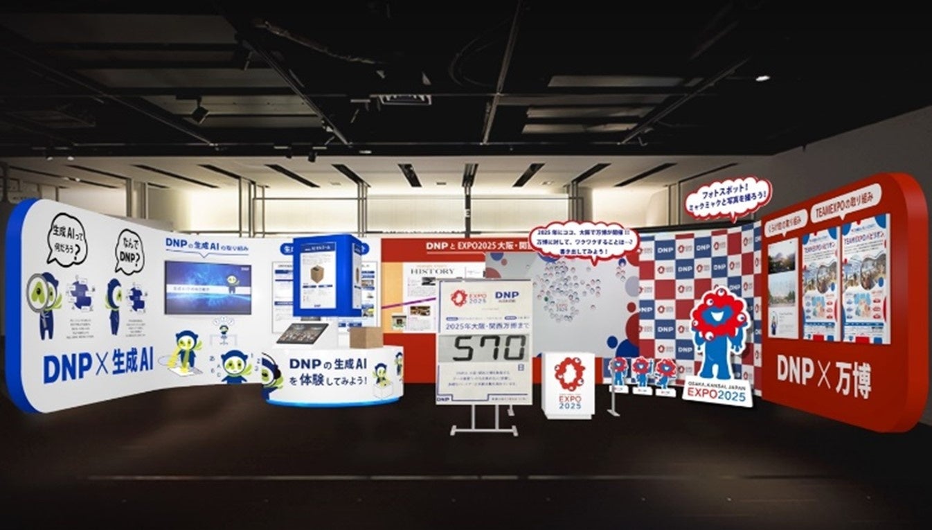 DNPの大阪・関西万博での取り組みを紹介するとともに、来場者が参加できる「ミャクミャクとの記念撮影コーナー」や「万博へのメッセージボード」を展開します。展示を通じて大阪・関西万博についての生活者の興味・期待を高める体験コーナーです。