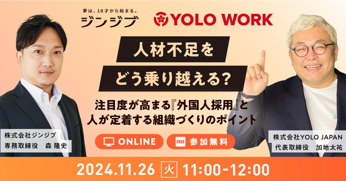 【11/26(火) 開催】「人材不足をどう乗り越える?注目度が高まる『外国人採用』と人が定着する組織づくりのポイント」無料セミナー|株式会社ジンジブとYOLO JAPAN共催