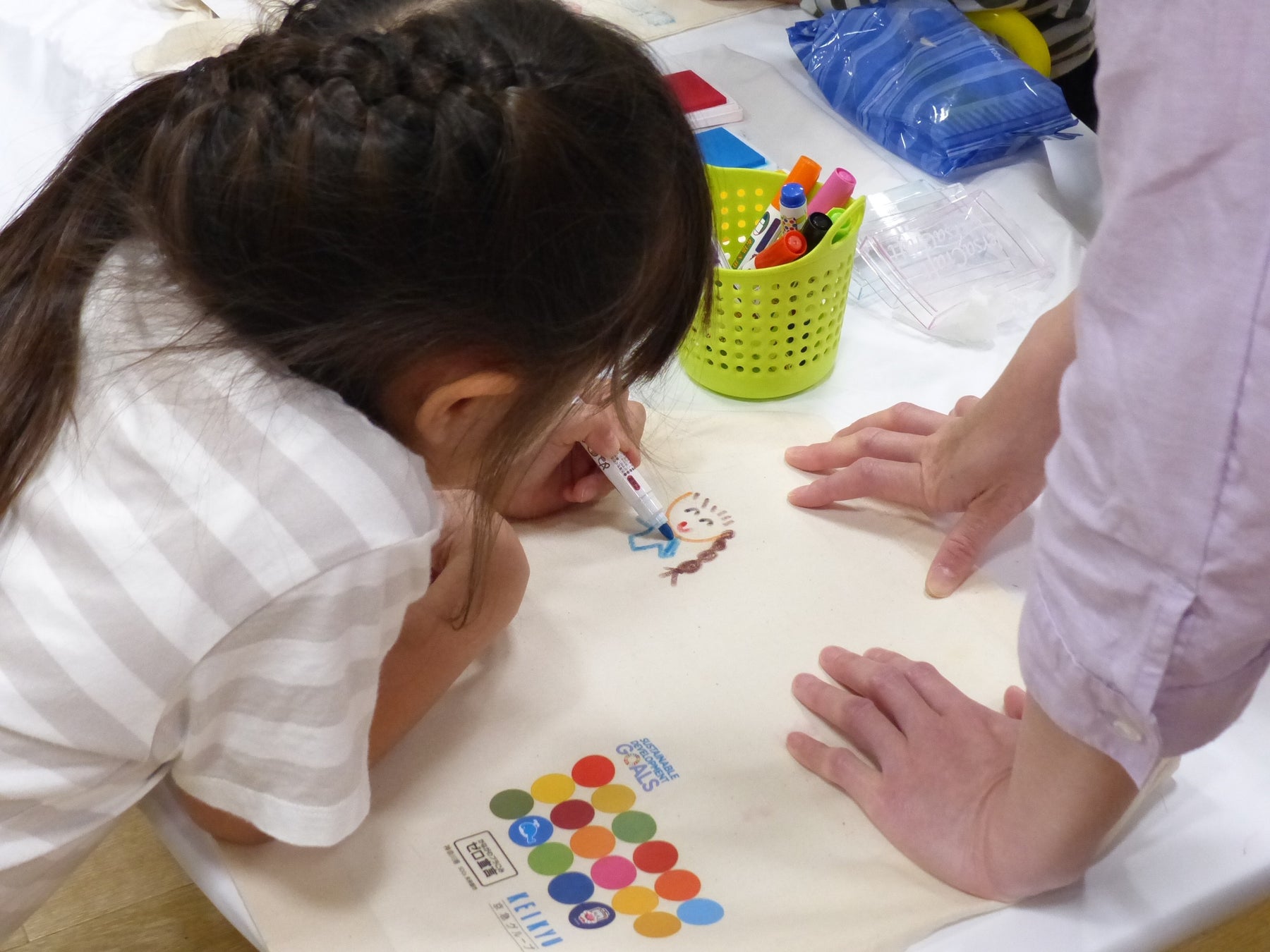 京急オリジナルのスタンプを押したり,カラーペンで絵をかいて,世界に1つだけのエコバッグを作ろう!