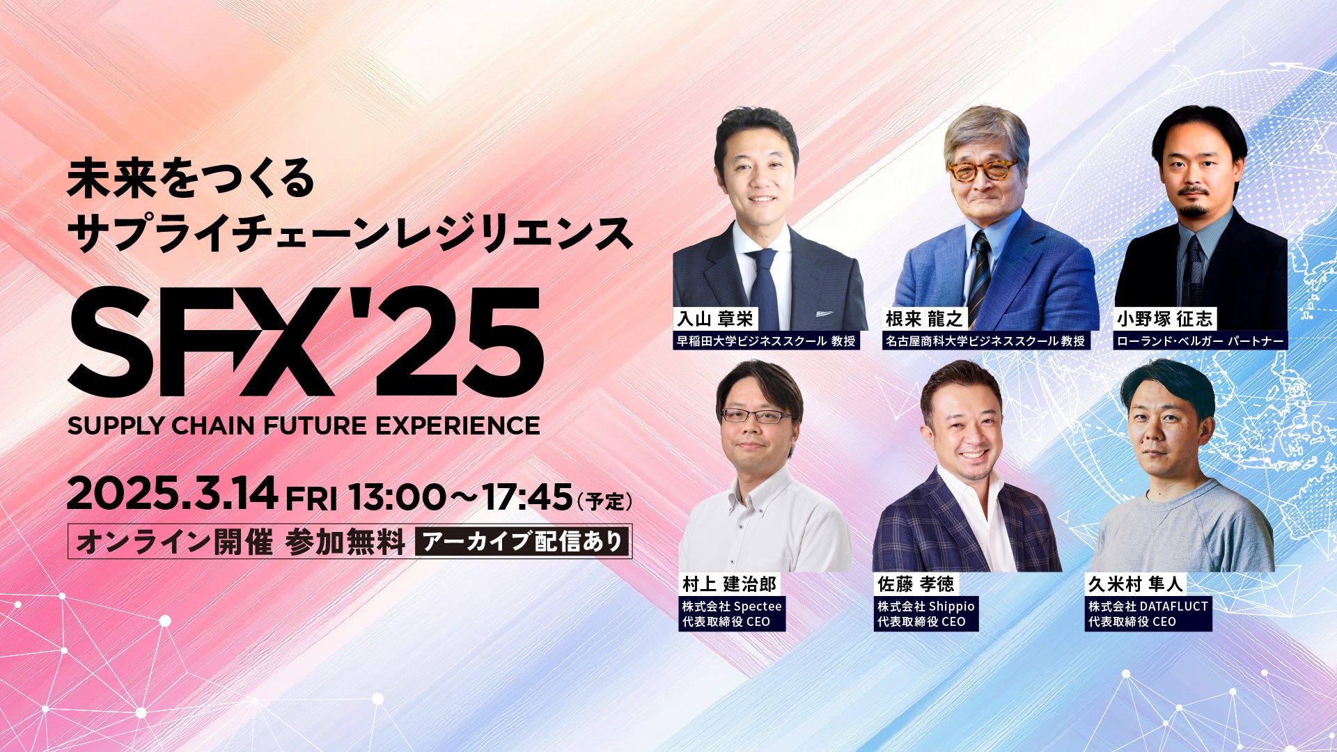 株式会社Spectee(東京都千代田区、代表取締役:村上建治郎、読み:スペクティ、以下「Spectee」)は、「未来をつくるサプライチェーン・レジリエンス」をテーマにしたオンラインカンファレンス「SFX - SUPPLY CHAIN FUTURE EXPERIENCE」を2025年3月14日(金)に開催します。