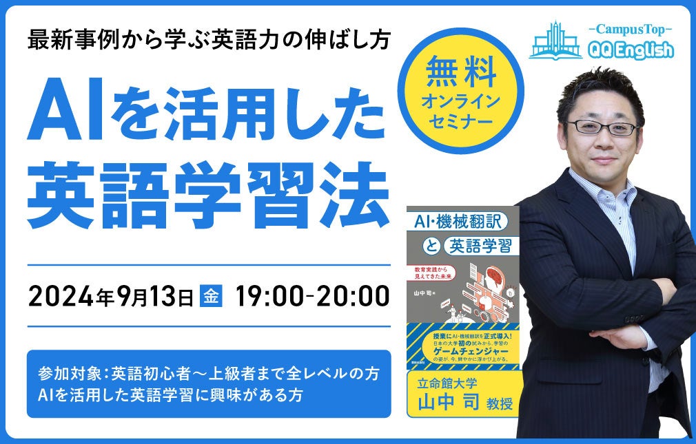 【立命館大学の山中司教授登壇】AIを活用した英語学習法について9月13日(金)19時からQQEnglish無料オンラインセミナーを開催いたします。