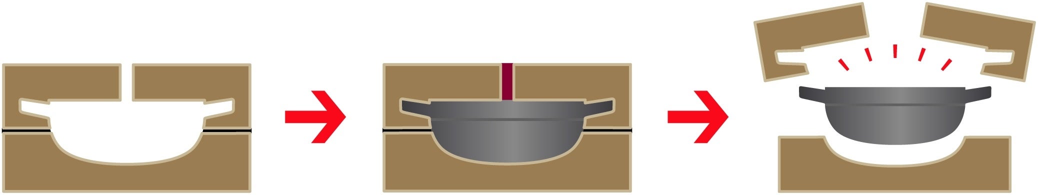 溶かした金属を使用するので複雑な形状にしたり、底面だけ厚くすることができます。