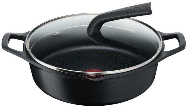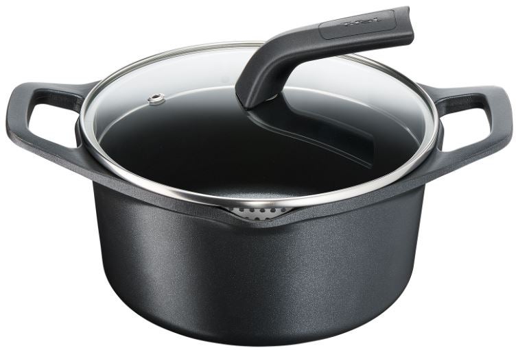 ティファール「キャストライン」シリーズは、鉄の約3倍、ステンレスの約13倍というアルミの熱伝導性と、しっかりした厚みのある鋳物ならではの優れた蓄熱性を兼ね備えた人気のシリーズです。アルミキャスト製法で底面を厚く成型しているため、すばやく全体をムラなく包み込むように加熱し、煮込み料理も時短で美味しく調理ができます。さらに、蓄熱性が高いので冷めにくく、調理時間や光熱費の節約にも役立ちます。また、アルミ素材なので軽くて扱いやすい特長もあります。