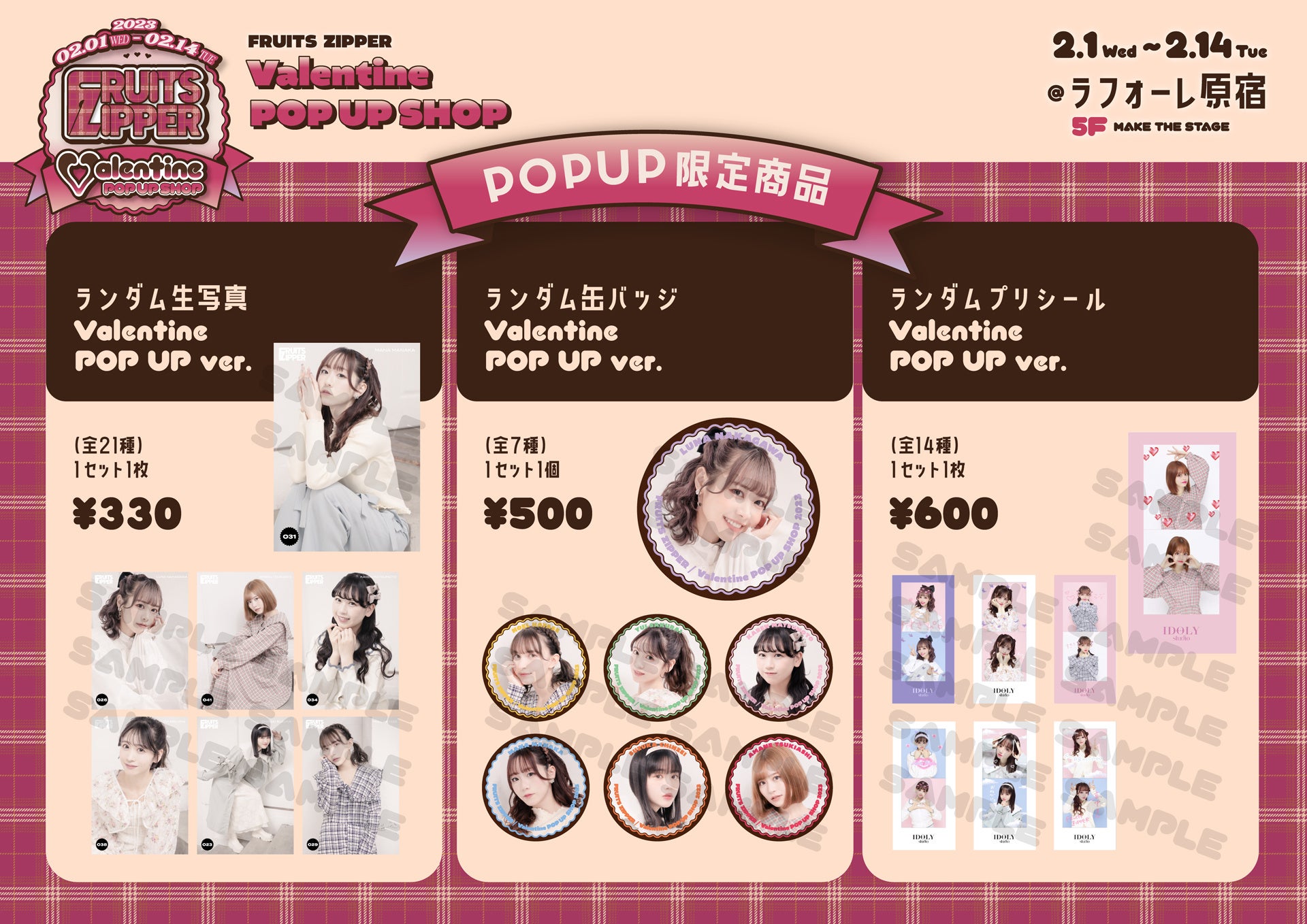 アイドルグループ・FRUITS ZIPPERの期間限定ショップ『FRUITS ZIPPER Valentine POP UP SHOP』が、2月1日(水)〜2月14日(火)までラフォーレ原宿5F MAKE THE STAGEにて開催されます。