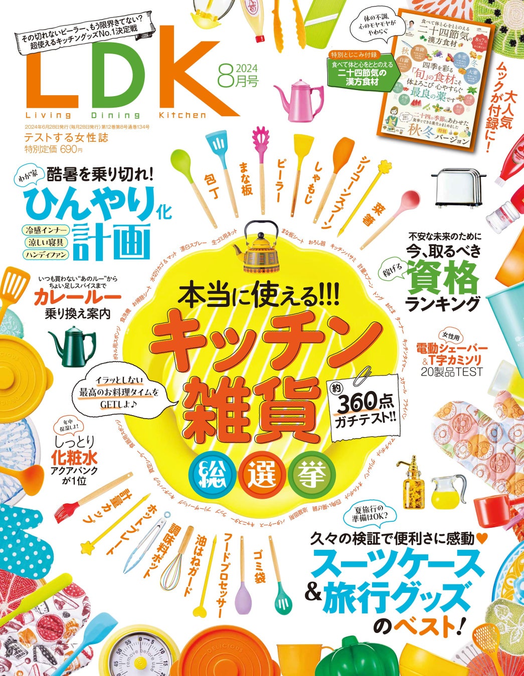 猛暑をしのいでゴキゲンに過ごそう!ひんやりグッズやお料理時間をもっと楽しめるキッチンツール、カレールーなど盛りだくさんな一冊!!【LDK 2024年8月号】