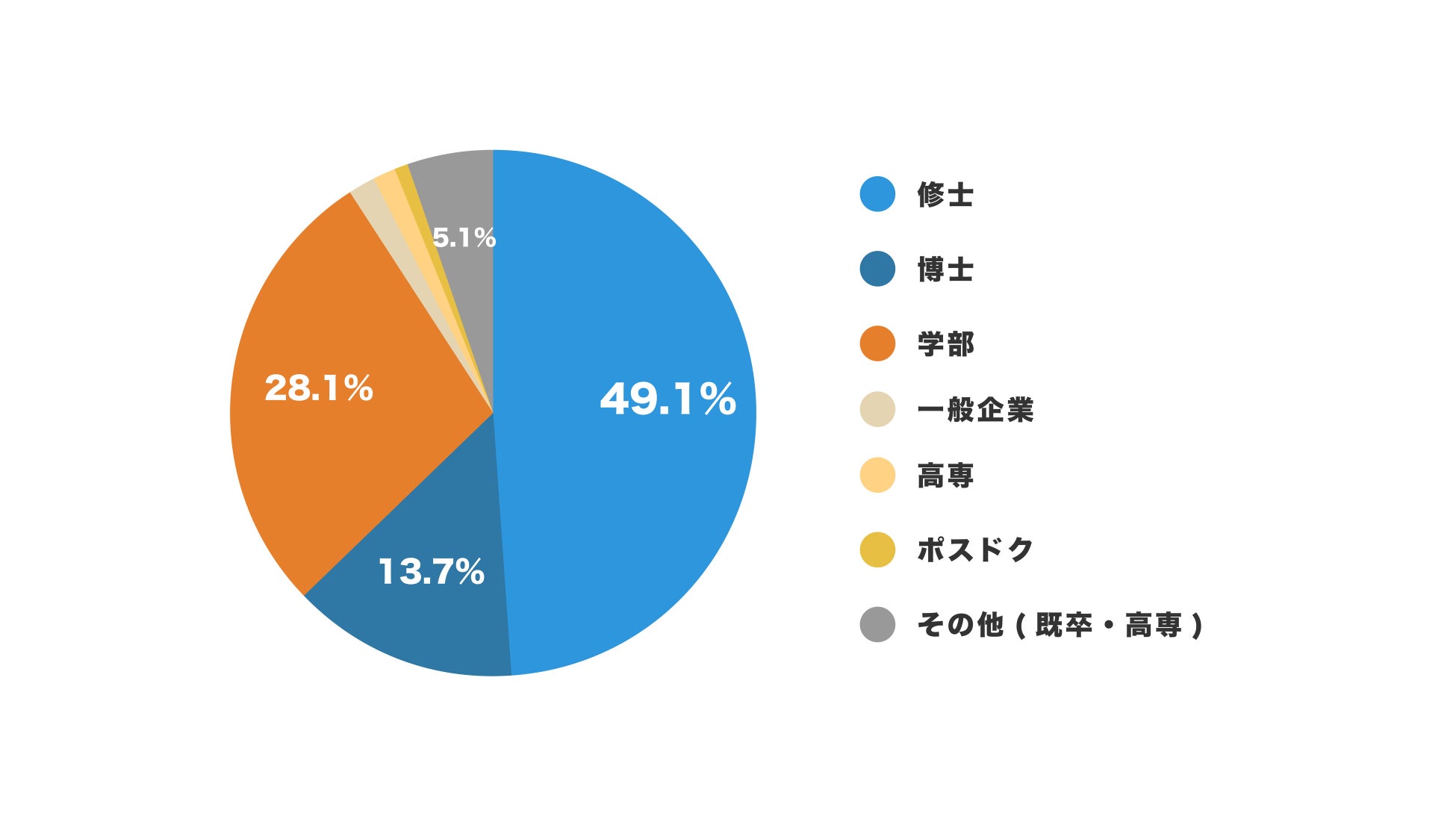 アカリク診断の利用者は49.1%が修士課程在籍中、13.7%が博士課程在籍中であり、利用者のうち6割以上が大学院生の方です。