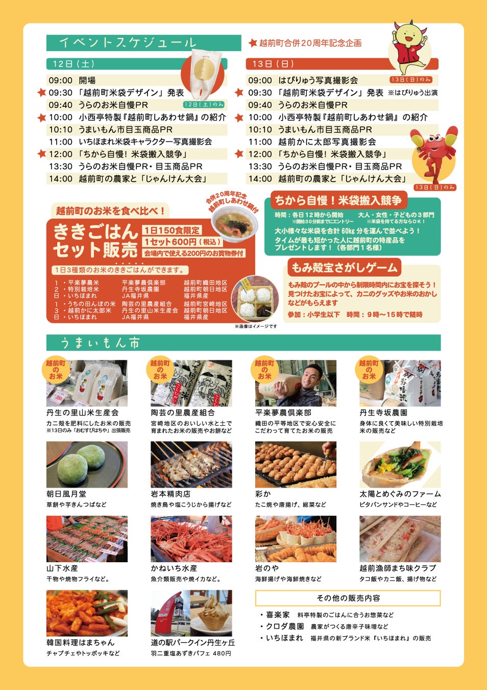 食欲の秋のこの季節、越前町でとれたお米や秋の味覚を集めた「越前の米とうまいもんまつり」を今年も開催いたします。