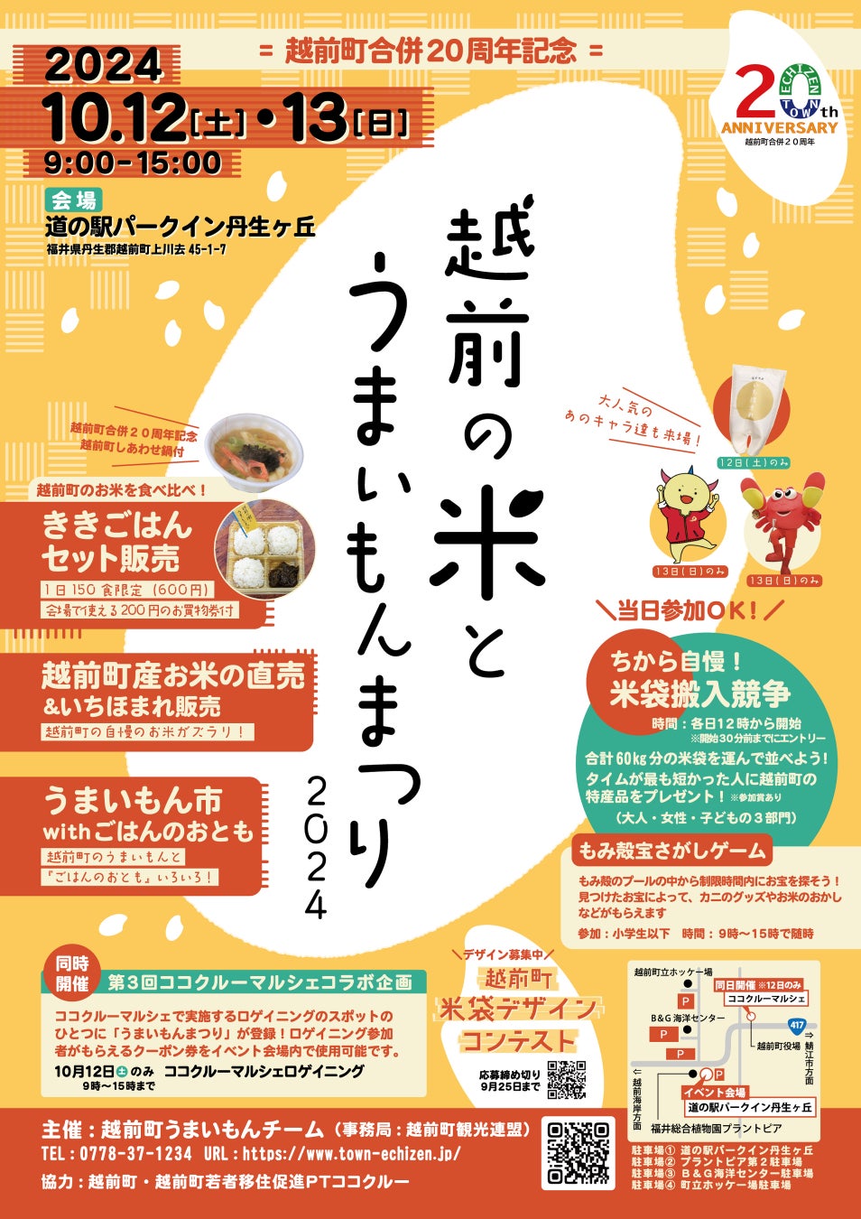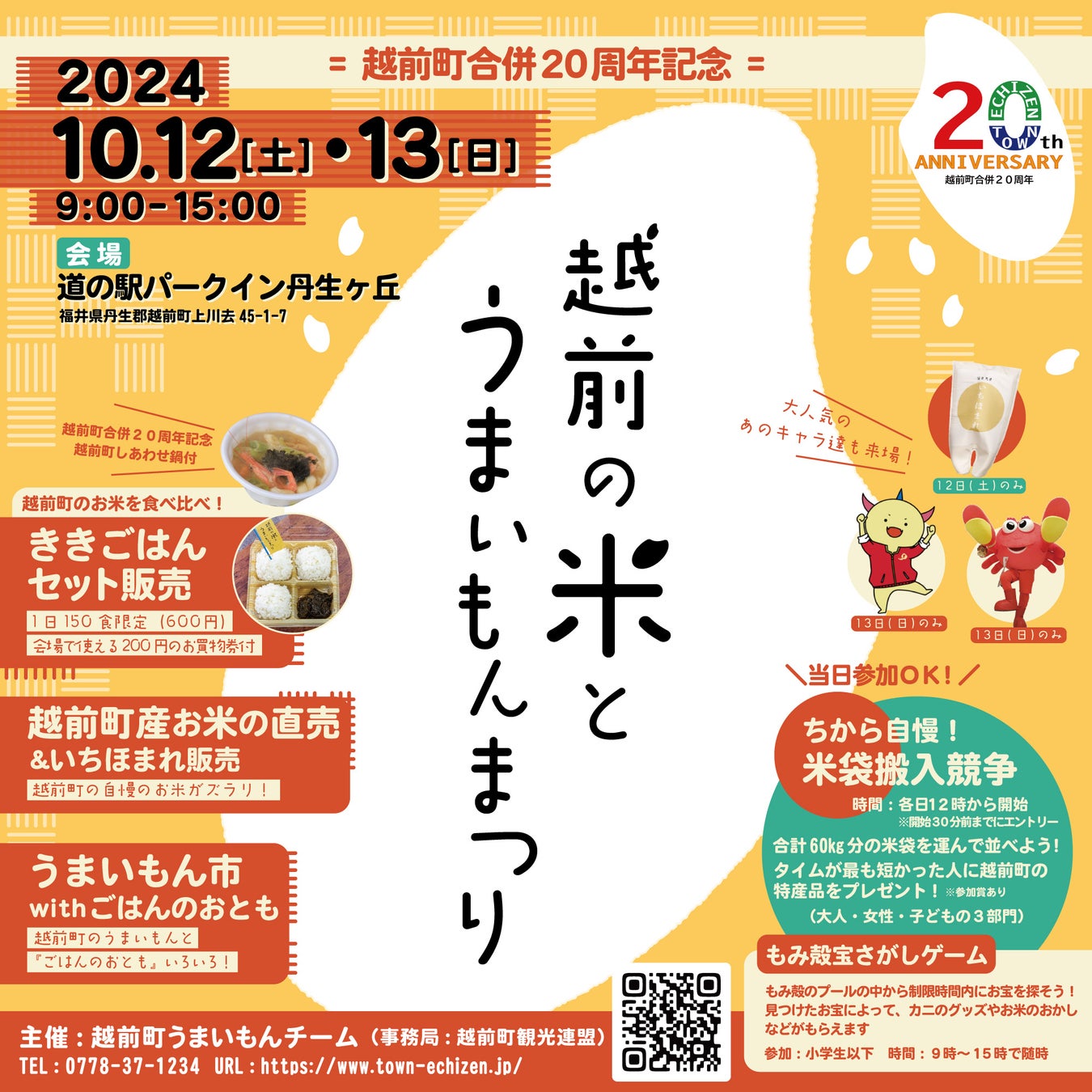 【福井県越前町】10月12日(土)・13日(日)に道の駅パークイン丹生ヶ丘で「越前の米とうまいもんまつり2024」を開催します!