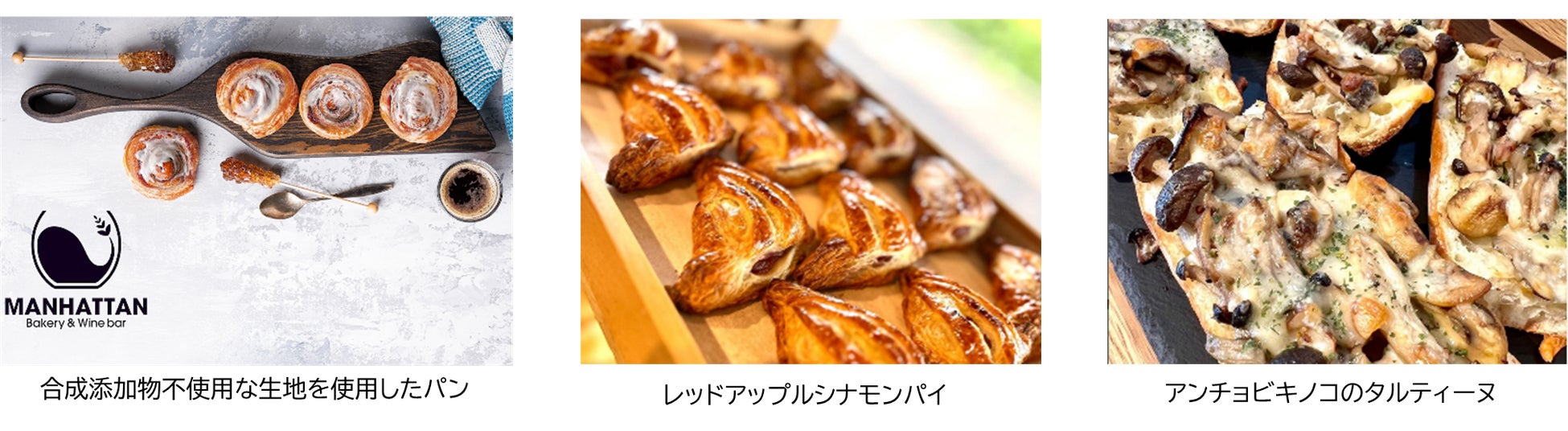 厳選した旬の食材と共に、合成添加物不使用の生地で作るパンやスイーツ、そしてManhattan Bakery & Wine barならではのワインに合うパンを出品予定です。秋が旬のさつまいもや栗、キノコ、りんごを使用した様々なパンを是非ご賞味ください。