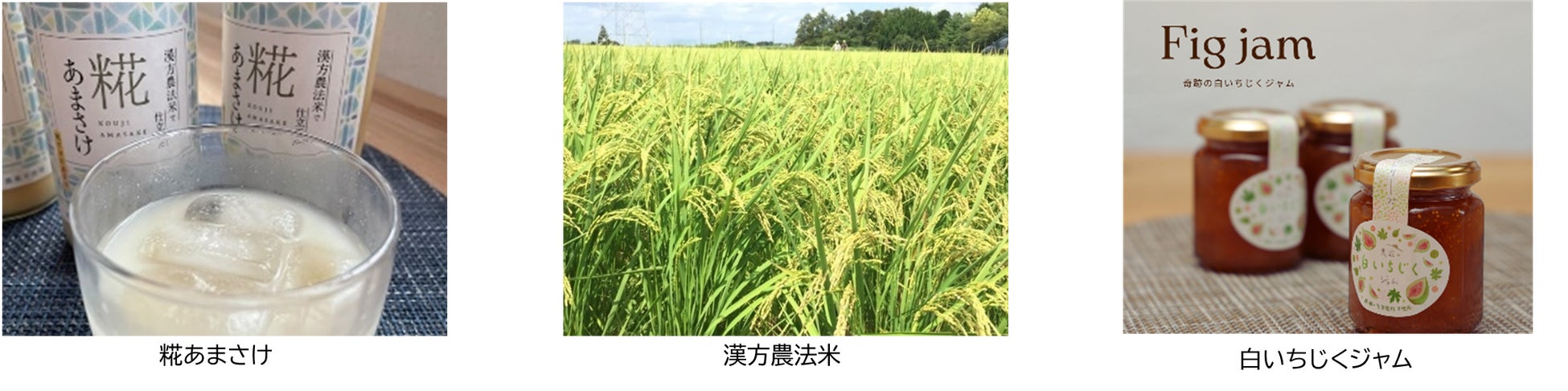 埼玉県加須市の農家、誠農社からは、新商品「糀あまさけ」と「いちじくジャム」、「若葉茶」を販売予定です。「糀あまさけ」は誠農社の漢方農法米(稲の自然治癒力を手助けする漢方を土壌に散布し栽培したお米)を使用し、福島の老舗糀屋の伝統技法「糀蓋製法(手作業)」で糀に仕立て、群馬県川場村の雪解け水で製造されています。併せて漢方農法米新米のご予約も承ります。