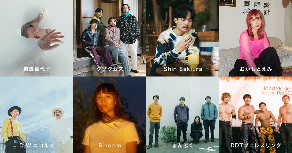 吉澤嘉代子、グソクムズ、Shin Sakiura、おかもとえみ、D.W.ニコルズをはじめとする全8組のアーティストが出演