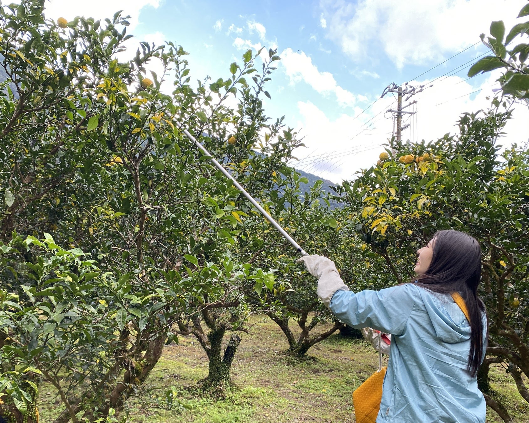 私は営業部の所属ですが、今回初めてゆずの収穫に参加させていただきました。実際にゆず農園で収穫を体験することで、ゆずの魅力をさらに知るとともに北川村の良さや農家の方のゆずへの想いを知ることができました。今後も北川村の活性化に貢献できるよう、より多くの方に、北川村ゆずを使った「ゆず油」シリーズ・「ユトワ」シリーズのファンになっていただけるような活動をしていきたいと思います。