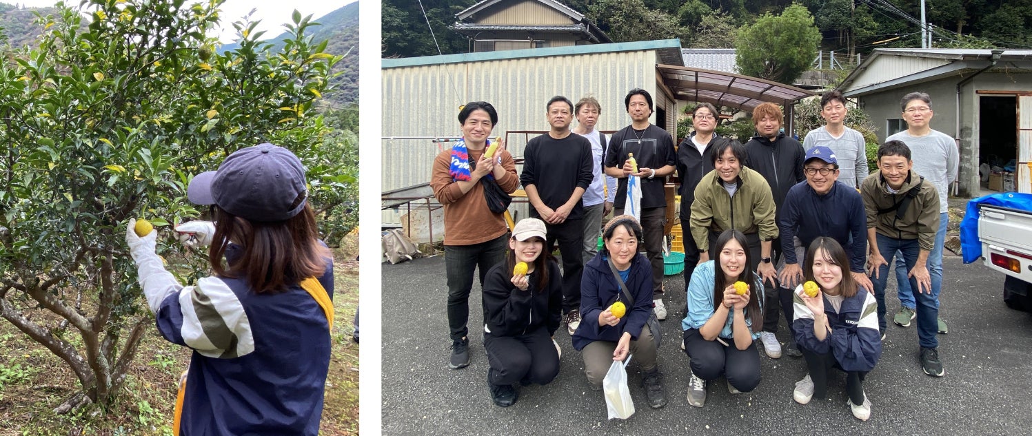小売の立場として、普段から地域の皆様に貢献させていただくことを心がけていますが、今回の収穫支援を通して実際に北川村を訪れ、村で重要とされているゆず産業の一部である収穫作業を身をもって体験することで、より北川村の現状について理解を深めることができました。今後、北川村の方々やゆず産業へ貢献として何ができるのかを考える、良い機会になったと感じています。