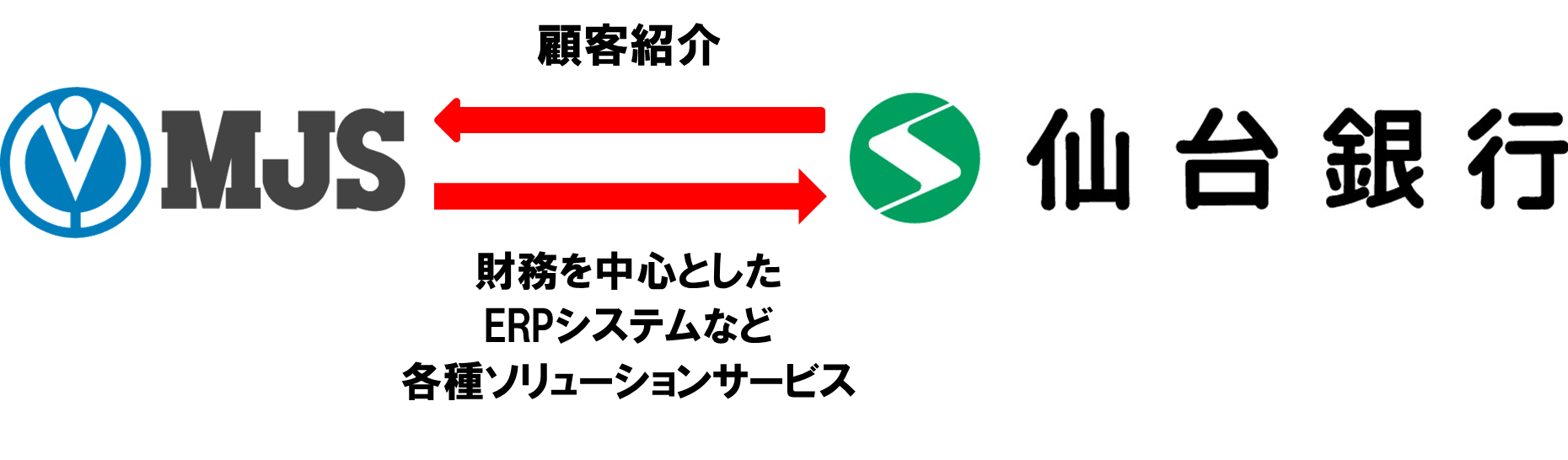 MJSは、本業務提携を通じ、地域の中小企業に対し、財務を中心としたERPシステムなど各種ソリューションサービスを提供し、仙台銀行は、これらを通じた顧客向けサービスの拡充により地域金融機関として多様化するお客さまのニーズに対応し、双方協力の下、地域密着型でお客さまの事業活動を支援してまいります。