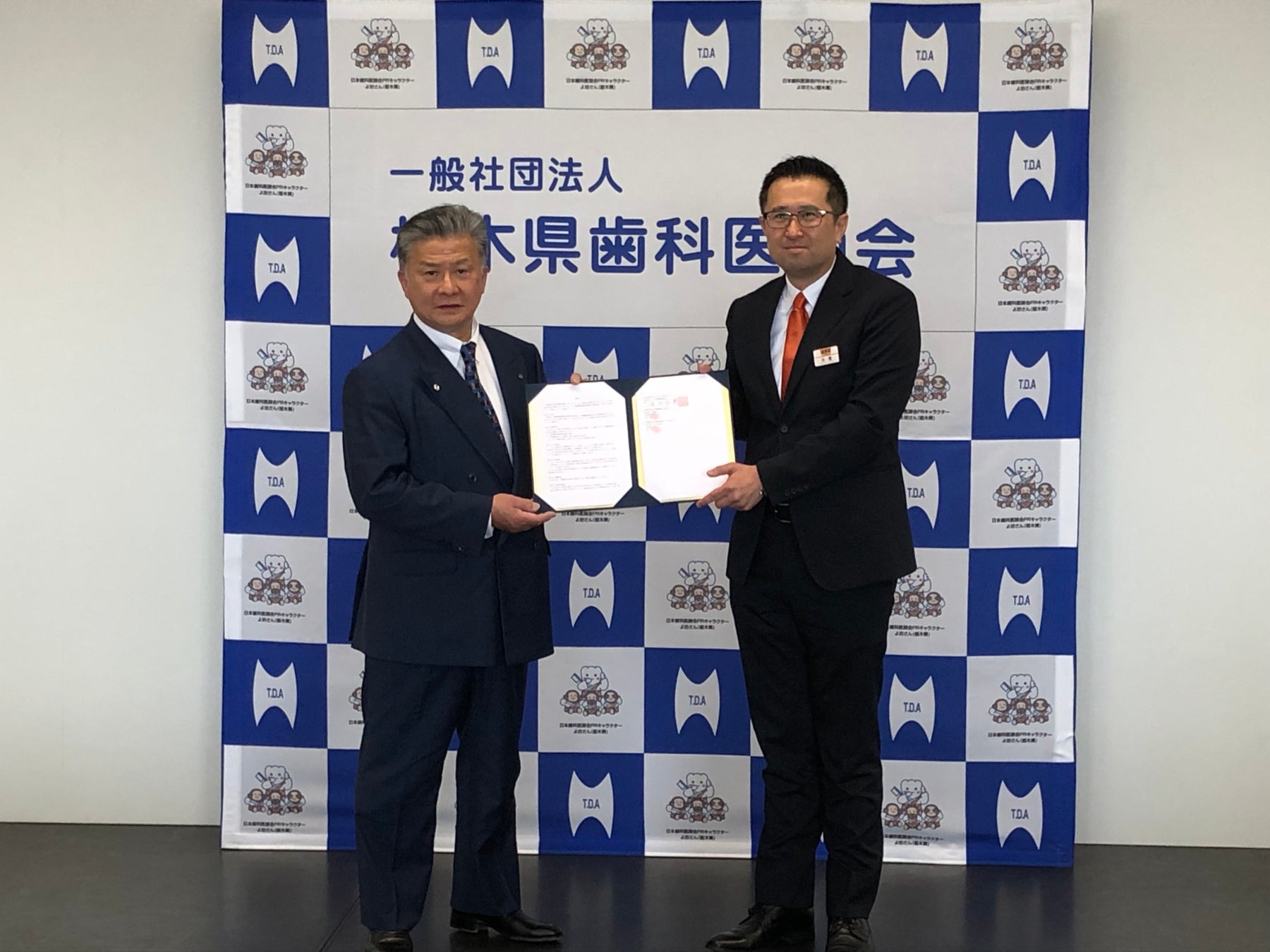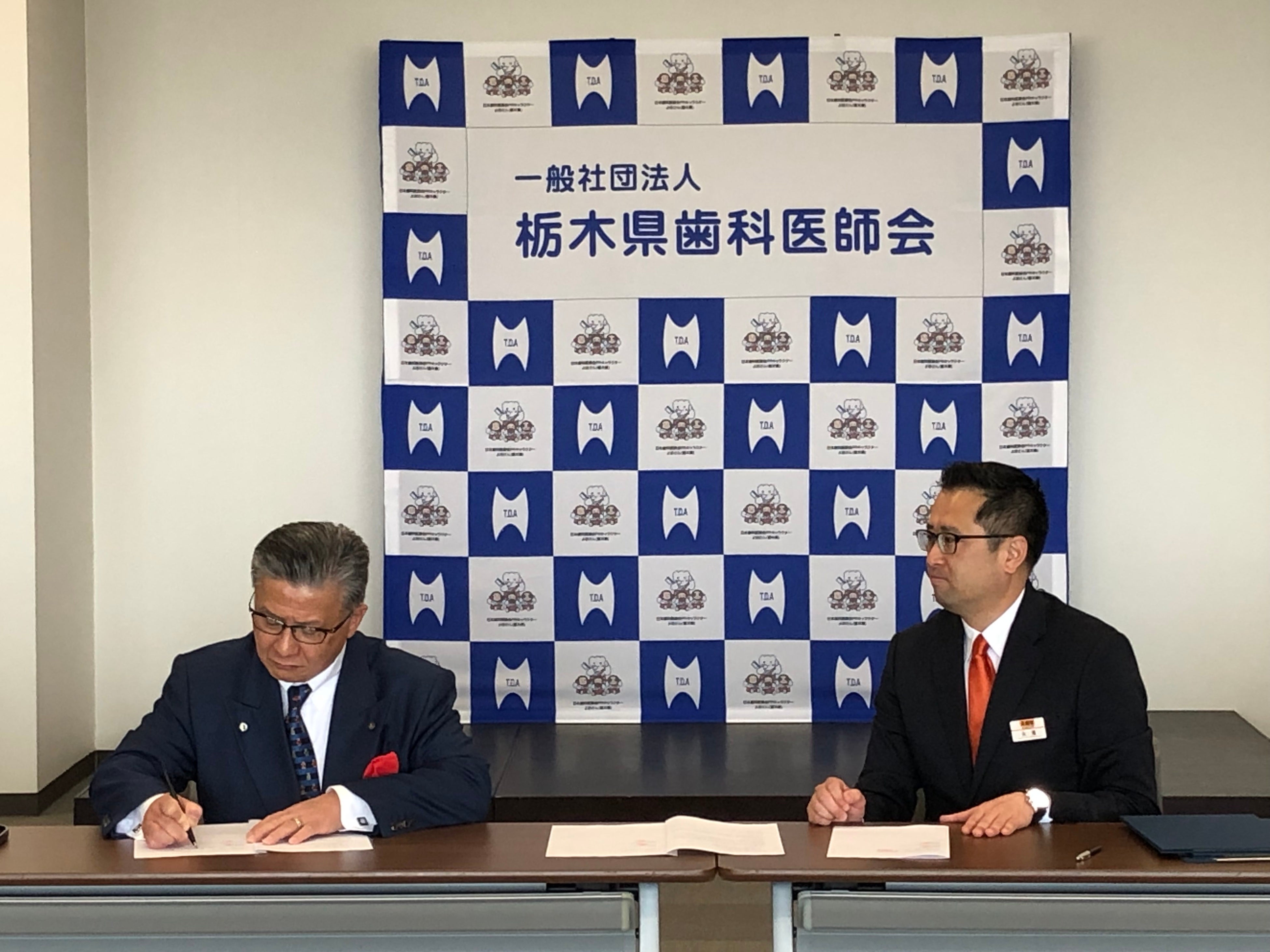 5月11日に栃木県歯科医師会館で行われた連携協定締結式の様子