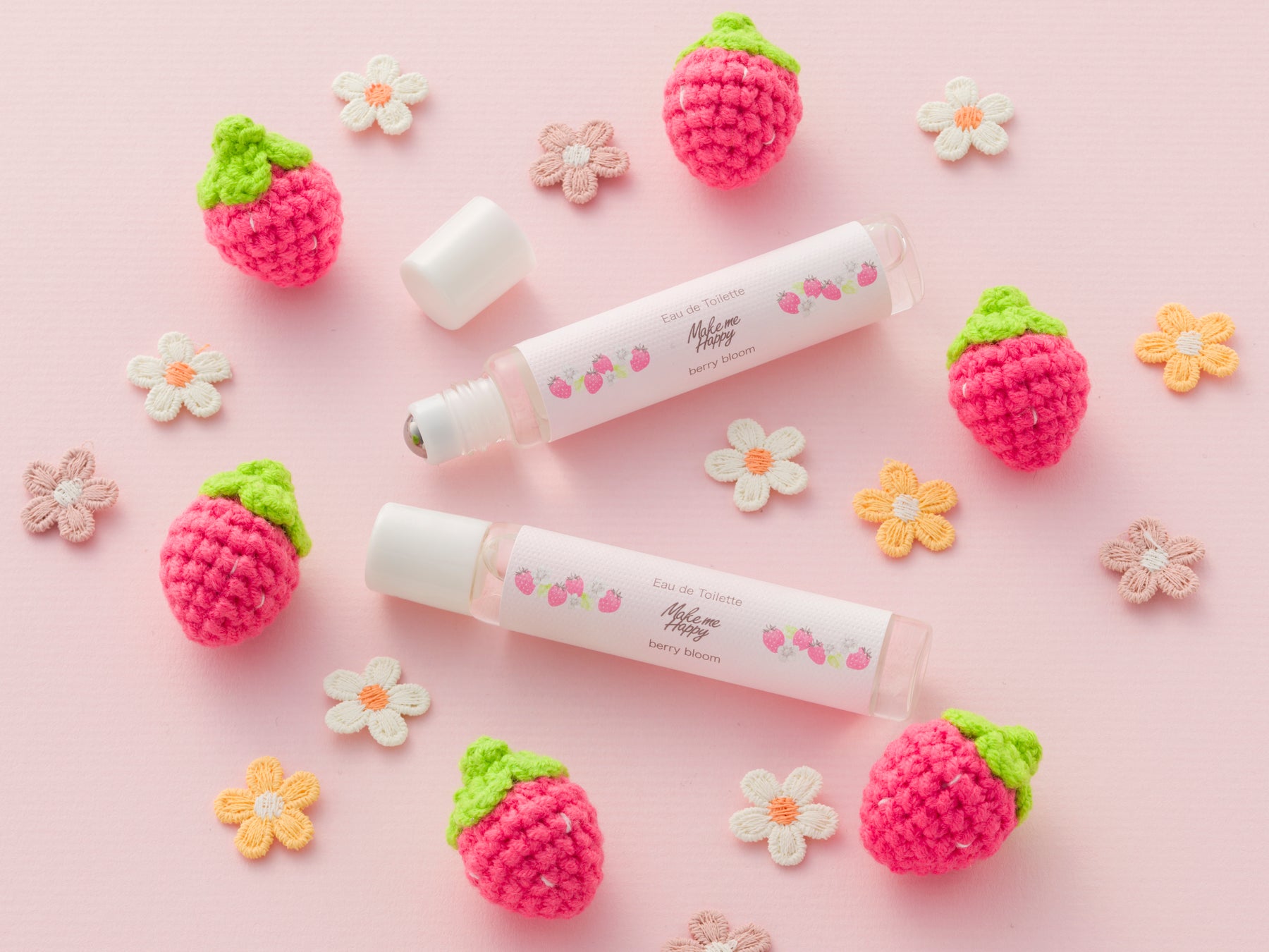 商品概要: 「メイクミーハッピー オードトワレ」 berry bloom 8mL ¥770(税込)