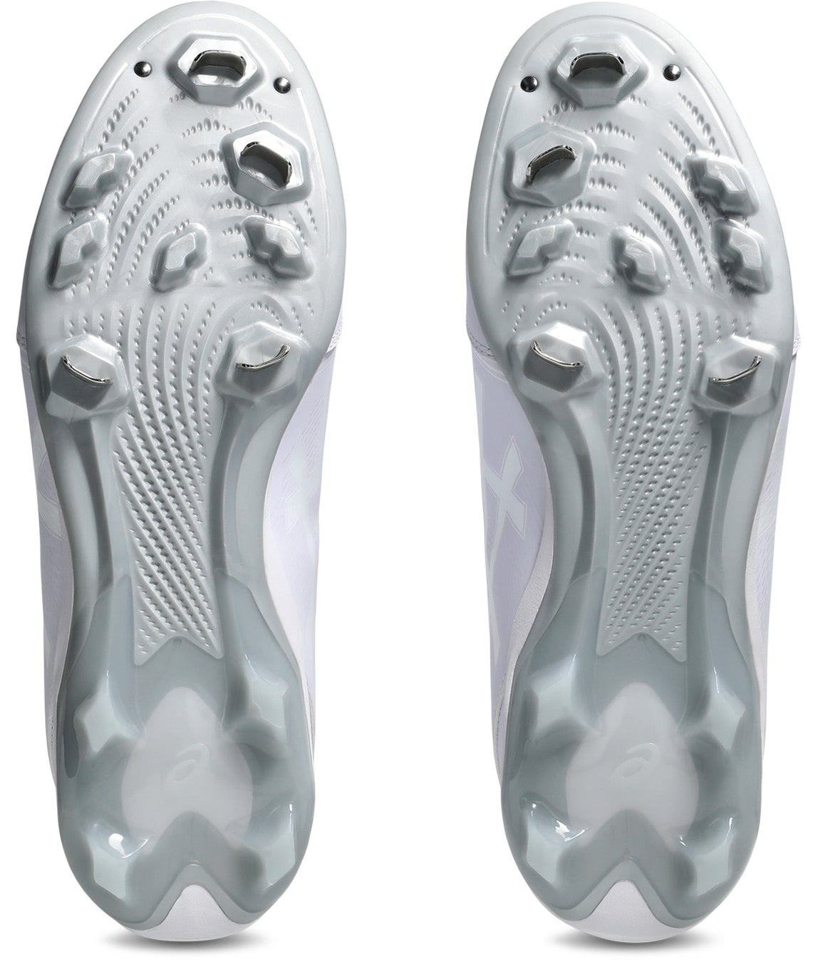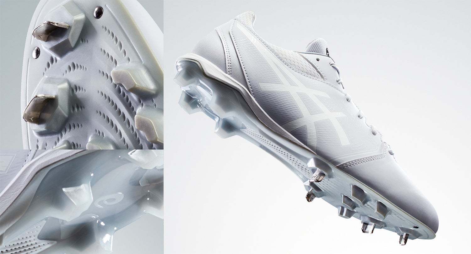 今回発売する商品は、主に守備や走塁時にスピードを求める学生に向け開発したもので、靴底の前部にグリップ力を高める金具を、かかと部に突き上げ感を緩衝する軽量の樹脂スタッドをそれぞれ配した新ハイブリッド構造が特徴です。金具は、走る際に力がかかりやすいつま先や母趾球部など4か所に配置し、選手が持つ走力を発揮しやすくしています。