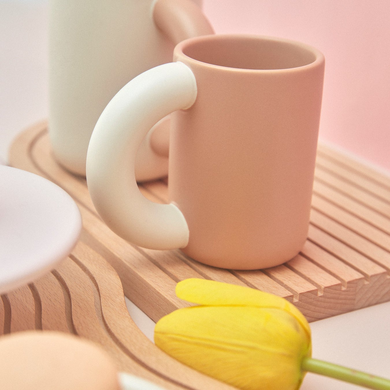 いつでもだれでもすぐにおうちカフェができる豪華なセットです。ウッドのトレイは、使わないときは壁に立てかけてインテリアとして飾るのもおすすめです。使っていてほっと一息つける、あたたかみのあるぽってりとした質感がポイントです。