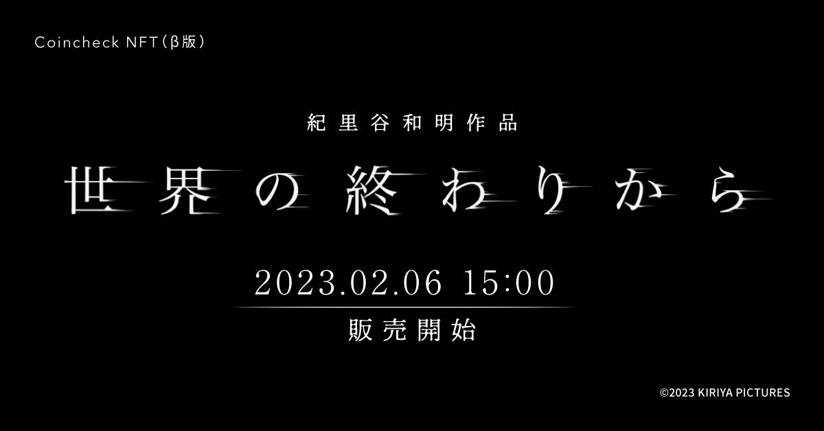 コインチェック株式会社(本社:東京都渋谷区、代表取締役:蓮尾 聡、以下、当社)は、2023年2月6日より、当社が運営するNFTマーケットプレイス Coincheck NFT(β版)において、映画監督である紀里谷和明氏が率いるKIRIYA PICTURESが発行するNFT「SEKAINOOWARIKARA(世界の終わりから)」(以下、本NFT)の取扱いを開始いたします。本NFTはCoincheck NFT(β版)での独占販売で、特典として条件を満たした購入者に映画『世界の終わりから』エンドロールクレジットへの購入者のお名前掲載の権利が付与されます。
