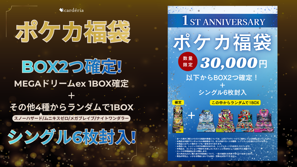 cardéria™池袋店、1周年記念福袋の好評を受け30,000円のポケカ福袋を数量限定で販売