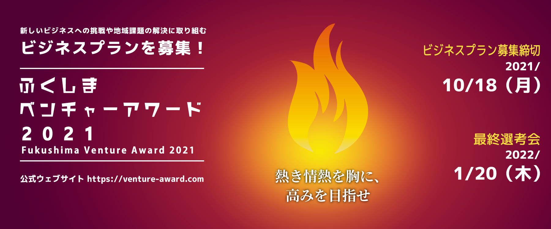 福島県では、復興・創生に向け、起業者が次々と生まれる「スタートアップの地ふくしま」の実現を目指しており、「ふくしまベンチャーアワード2021」では、福島県内において新しいビジネスへの挑戦や、地域課題の解決に取り組むビジネスプランを幅広く募集しました。