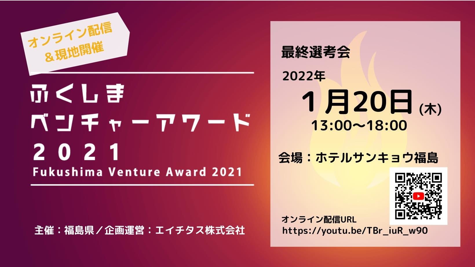 エイチタス株式会社(本社:東京都千代田区、代表取締役:原 亮/小澤 剛)では、福島県主催「ふくしまベンチャーアワード2021」の企画運営を行っており、1月20日、オンライン配信にて最終選考会を開催いたしました。