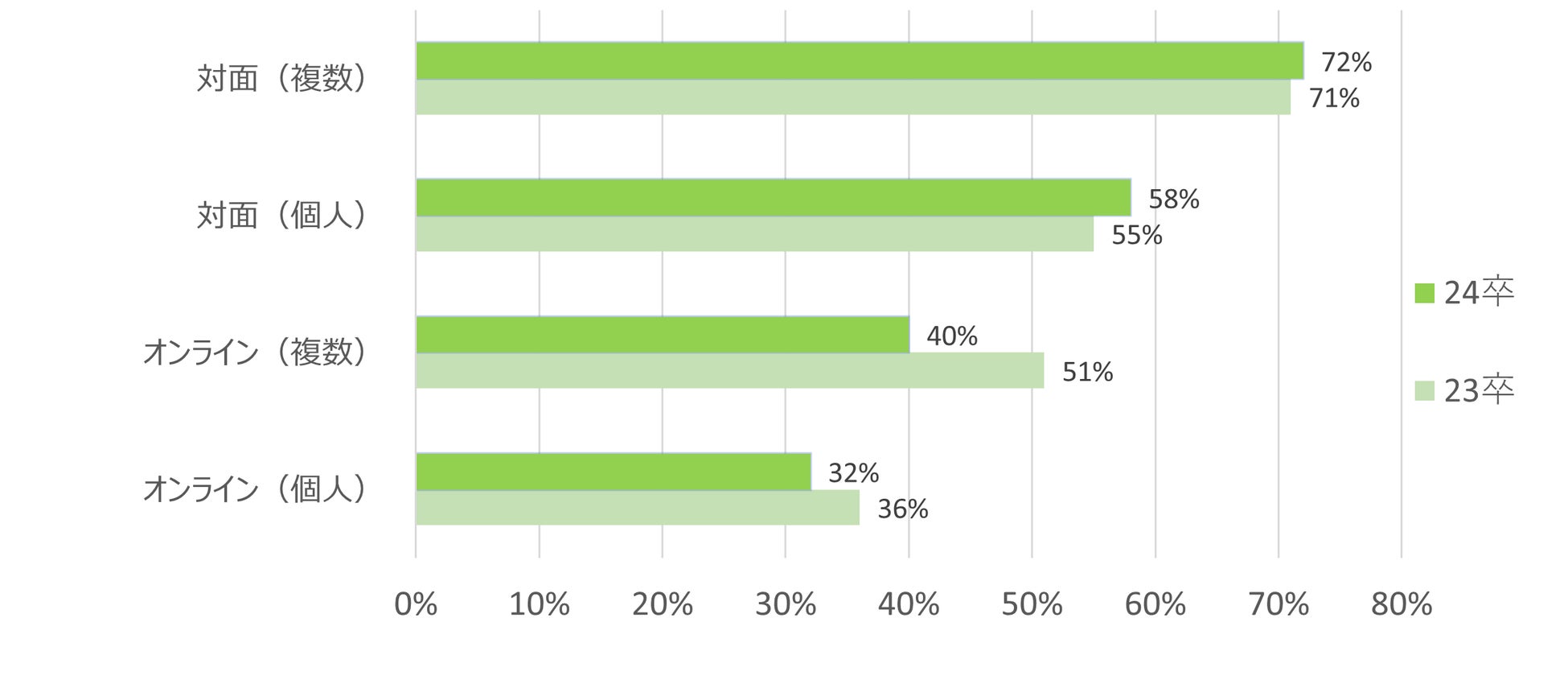 23卒と比較すると、予定を含めた参加割合が約20%増加している。
