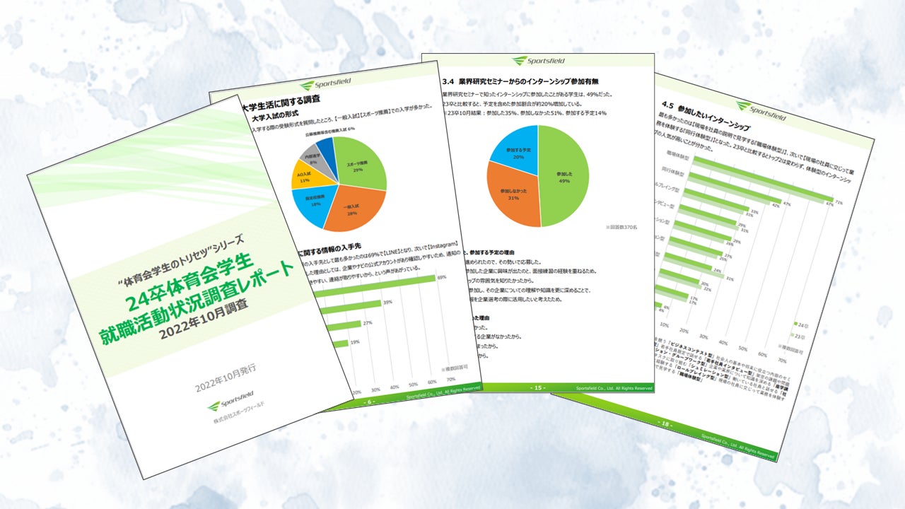 体育会・スポーツ学生のための就職活動支援サイト「スポナビ」を運営する株式会社スポーツフィールド(代表取締役:篠﨑 克志)は、24卒の体育会学生を対象とした調査レポートをリリースいたしました。