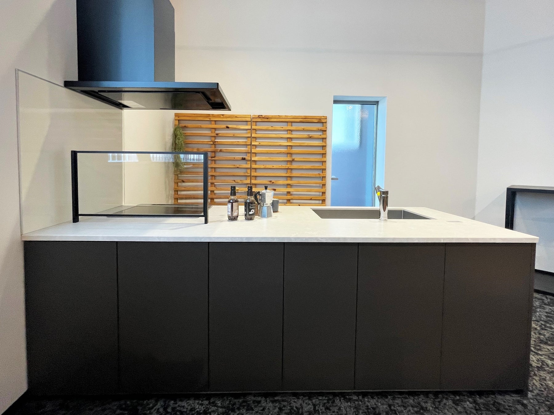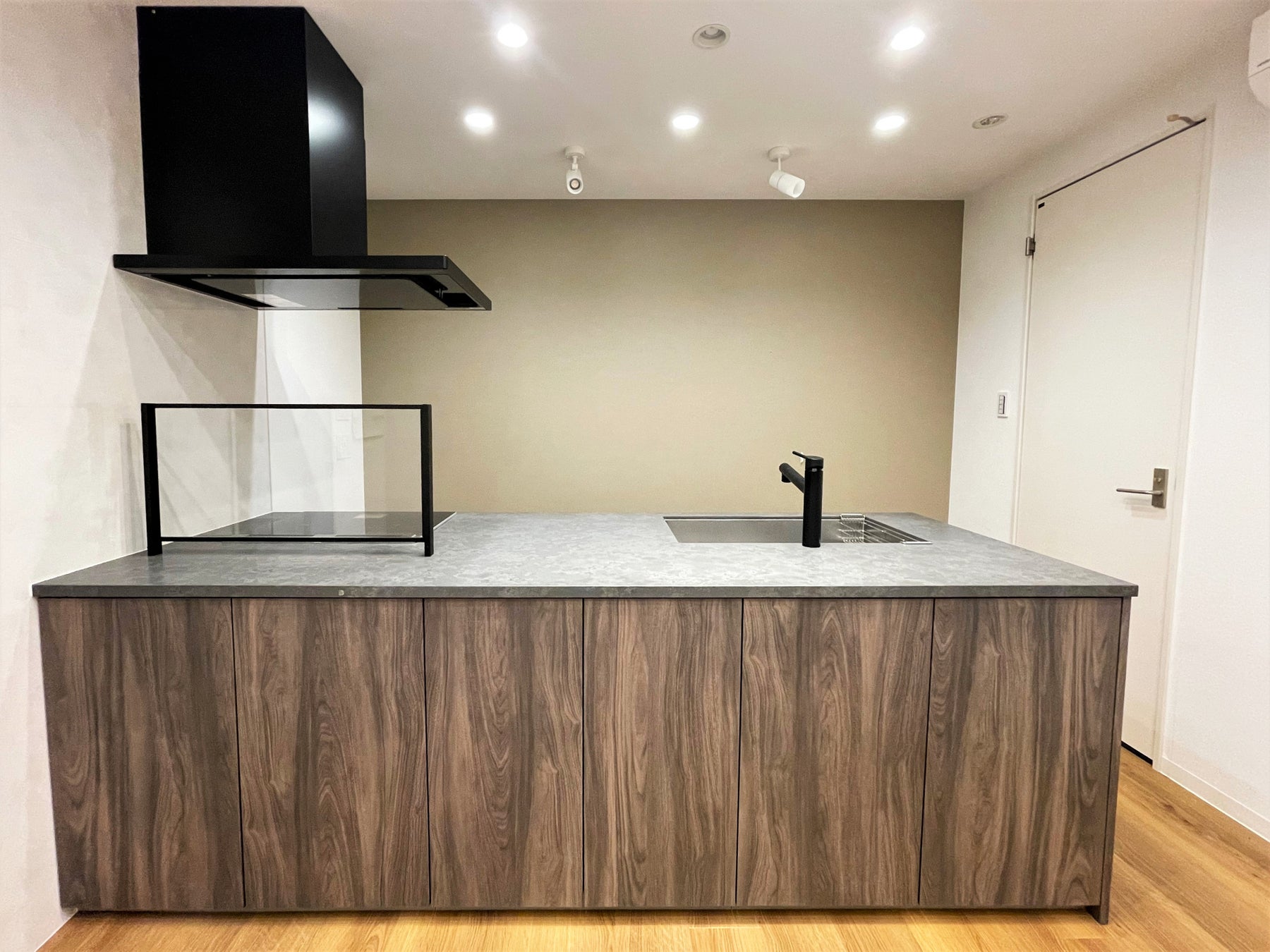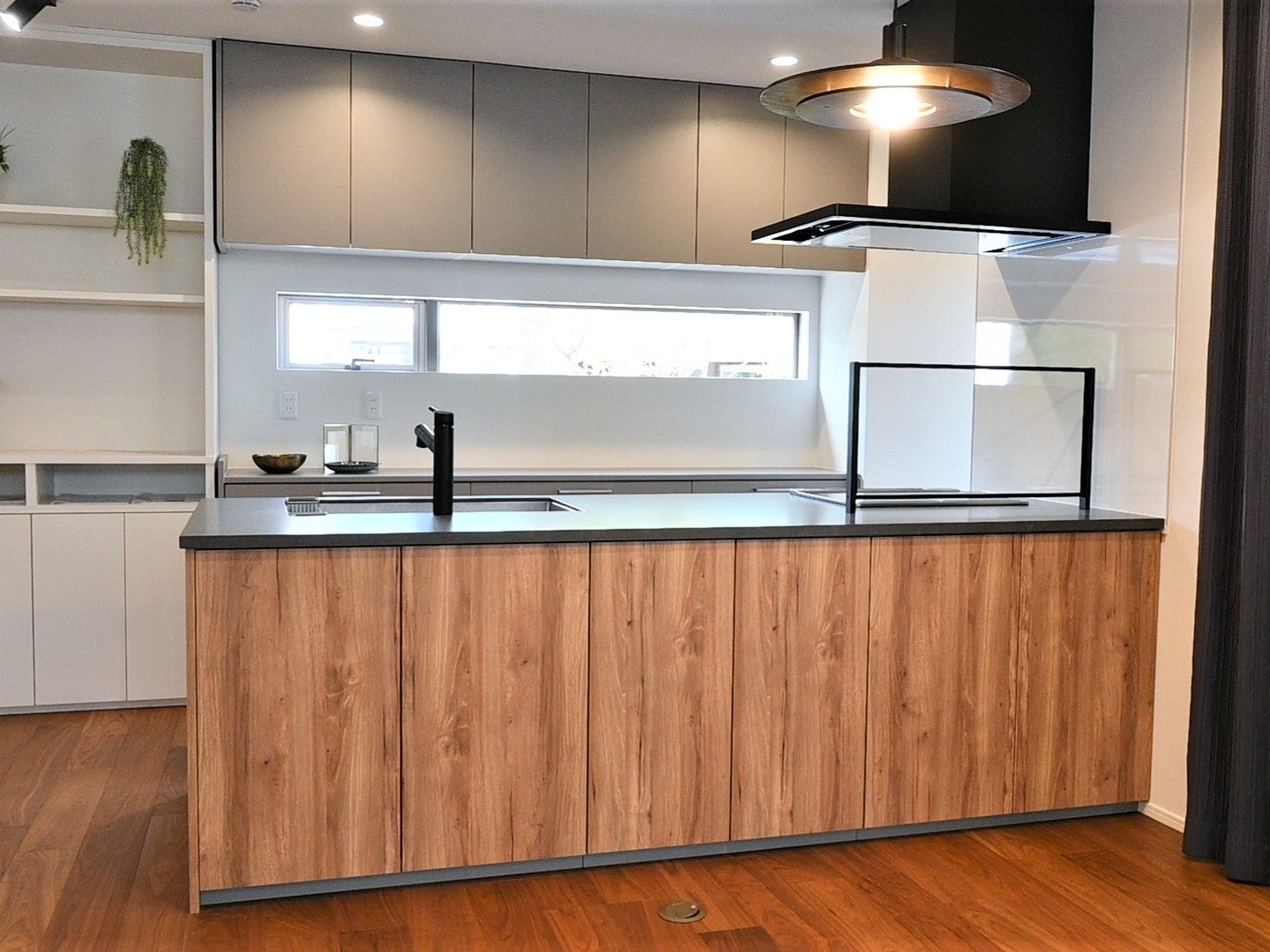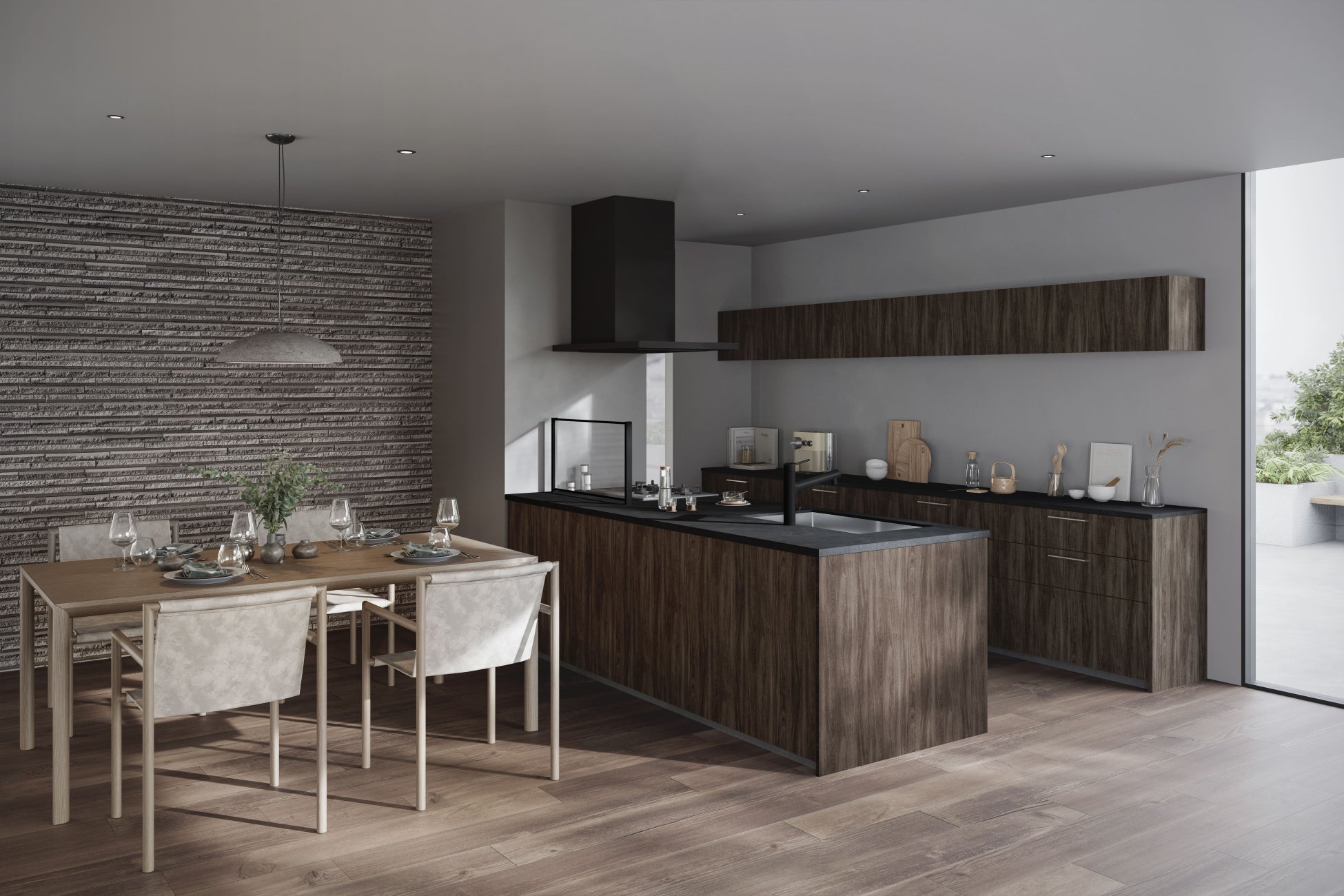 優れた素材や性能にこだわる“本物志向”のニーズが高く、デザインとしては“グレージュ系”“濃色のワークトップ(天板)”“異素材の組み合わせ”が高い人気を集めており、本キッチンは、他キッチンメーカーでは扱いがない高級素材のクォーツストーン(人造石)のワークトップやトレンド感のあるカラーと材質の扉、本キッチンとあわせてコーディネートできるカップボードをご用意いたしました。