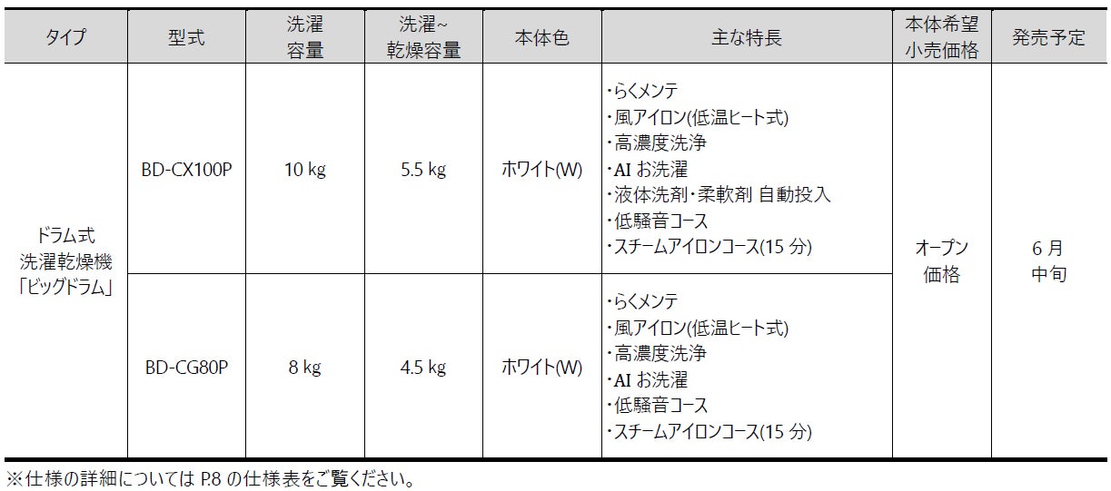 本製品では、こうした背景を踏まえ、設置スペースに制約のある住環境においても、「ビッグドラム」ならではの衣類の仕上がりとお手入れの手軽さを両立した洗濯体験を提供します。