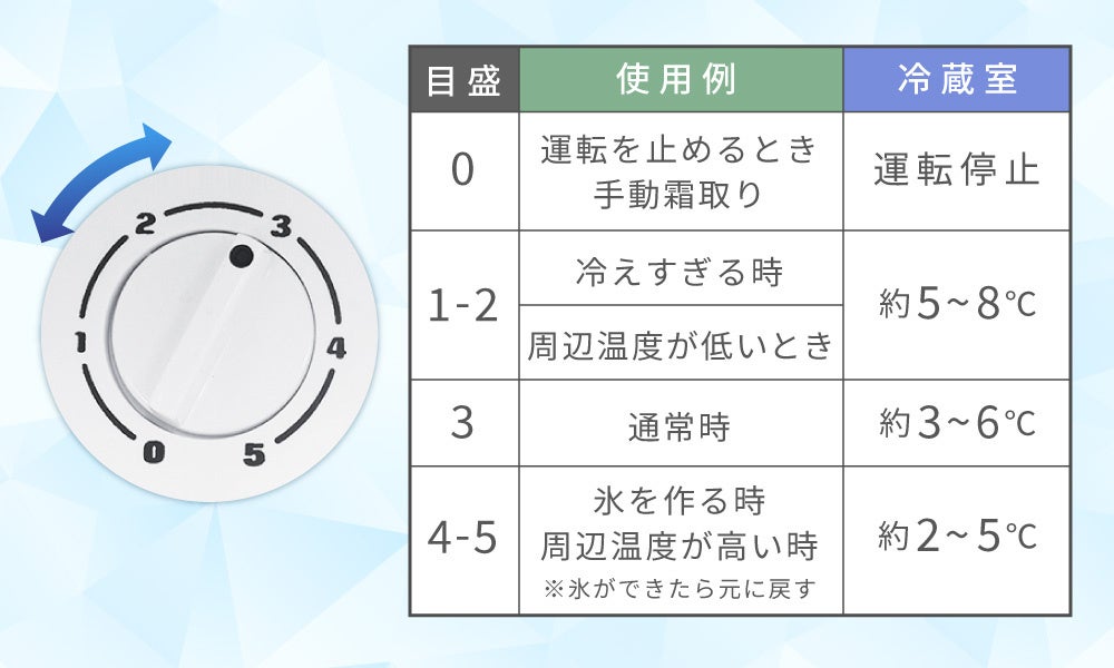内容量に合わせて冷蔵庫と冷凍室の冷却温度を段階調節できます。
