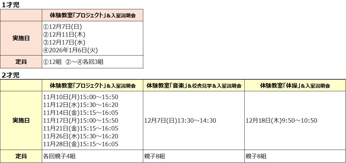 2才児 10月24日(金)15:15~16:15、10月25日(土)11:00~12:00